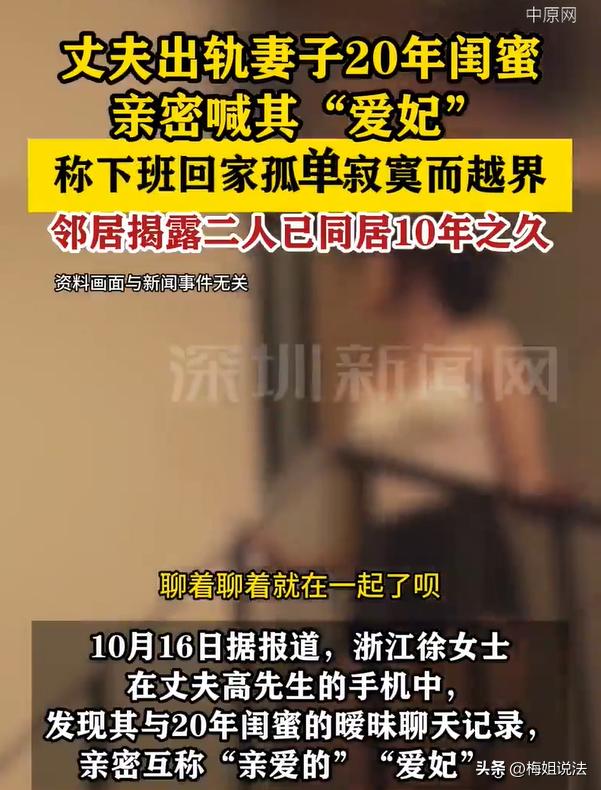浙江,一女子跟闺蜜相处了20年,没想到自己的丈夫却看上了她的闺蜜,下班回来说很寂寞,就悄悄勾搭妻子的闺蜜,两人暗地里相处了10年。女子实在无法接受,好朋友变成了情敌,丈夫情感背叛自己。更令女子感到恶心的是,丈夫还称闺蜜为“爱妃”,很享受彼此的亲密关系。就这样,女子跟丈夫两个人的感情,几乎快要走到尽头。 (本新闻参考来源:中原网) 究竟是要有运气多差,才能碰到这样的丈夫、跟这样的闺蜜呢? 徐女士跟丈夫高某结婚多年,生活一直平淡安稳。 为了外出挣钱,高某则离家外出工作,经常离家奔波。而妻子徐女士则留守在老家,带带孩子、照顾老人。 徐女士作为留守配偶,自然也会理解丈夫的辛苦,所以平时没事,她就会跟自己的闺蜜张某(化名)分享心事。 长此以往,徐女士跟张某的关系非常铁,两个人真是个好姐妹。 没事的时候,徐女士跟张某还会经常相约了外出逛街、吃饭、喝喝茶之类的,这么一相处,两人就有了20多年的情谊。 但是,知人知面不知心,要知道,跟闺蜜相处的这20年里,有10年的时间,闺蜜在暗地里背叛自己。 另外一个背叛自己的,当然就是自己的老公高某。 原来,高某偶尔回来的时候,正好就遇到了来家的张某,两个人互相看对眼了,就背着徐女士,开展了不正规的恋情。 一开始高某先是发信息,跟张某两个人聊暧昧的内容,后来二人干脆就确定了关系,正式越过了雷池。 发展了不正当的亲密关系之后,高某跟张某,完全就开始享受彼此的关系。 徐女士的丈夫高某非常谨慎,每次聊完亲密的内容之后,他都会把聊天记录全都删除掉。 而闺蜜张某那边,则会使用一个假名,跟高某聊天、联系,所以一直以来,徐女士完全都不知情。 要知道,徐女士跟自己闺蜜相处了20年,却有10年的时间,在跟自己的丈夫暗地里来往,这一点,真的令人心寒啊。 而丈夫高某呢,则非常享受这种“偷偷摸摸”的感觉,也很享受跟张某的情人关系。 甚至,在交往的时候,还喊张某为“爱妃”、“亲爱的”,也实在是可耻得很。 比较搞笑的是,徐女士一直被蒙在鼓里,而邻居们却早就看出了猫腻,不是邻居的提醒,单纯的徐女士丝毫不清楚事件的真相。 邻居最后忍无可忍,跟徐女士说:“别傻了,他俩早就在一起了!” 徐女士去质问闺蜜,张某则说,也没多久。但是丈夫表示,他俩已经在一起10年了。这个答案,徐女士实在是无法接受,他俩都把她当做傻子。 隐瞒自己整整十年,徐女士还把她当做能说心里话的人,而丈夫,虽说是自己的亲人,却一直欺骗自己、背叛自己,她哪里能接受呢? 徐女士的遭遇被相关电视节目给报道了,并且邀请了徐女士夫妻俩去节目里做客,希望可以给徐女士做一下心理辅导,是否后期还能跟丈夫和好如初。 但是很可惜的是,徐女士表示,他们夫妻俩的感情早就淡了,早就没话说了,因为分居久了,现在还背叛家庭,后面应该何去何从,她自己都不清楚了。 这个时候,就要看徐女士的态度了,如果她想要追责,还是有法律可以支持她的。 根据《刑法》规定,如果配偶长期跟他人持续、稳定的共同居住、生活、对外声称为夫妻,且周围邻居都可以作证,此举则构成重婚罪。 另外,据《民典法》第1043条规定,跟“有配偶者共同生活居住”,二人会因为过错被判入刑,无过错方也可以主张离婚损害赔偿。 所以,根据上述两条法令可知道,丈夫跟闺蜜的行为,就是违法的,不仅违反了法律,也违反了婚姻义务,构成双重犯罪——“有配偶者与他人同居”以及“重婚罪”。 如果徐女士坚持上诉,丈夫跟闺蜜,极有可能要入刑。 另外,徐女士如果想要离婚,可以根据《民典法》第1087条规定,按照“照顾无过错方”原则判决,一般无过错方可以追回60%甚至更多的共同财产份额。 据此法令可知,徐女士可以依法追回财产,保障自己的经济权益。如果丈夫在跟闺蜜相处期间,还存在财产转账,那么根据《民典法》规定,擅自处分夫妻共同财产,赠予行为无效。 徐女士可以上诉闺蜜,已发返还这些赠予,以“违背公序良俗”为由,要求闺蜜返还丈夫擅自处分的财产。 当徐女士面对这类双重感情背叛,内心遭受打击与伤害,她更多的是需要跟亲友多倾诉,排解内心的抑郁,只能希望她可以尽快走出来,重新面对自己的人生。 对于此案,大家都怎么看呢?