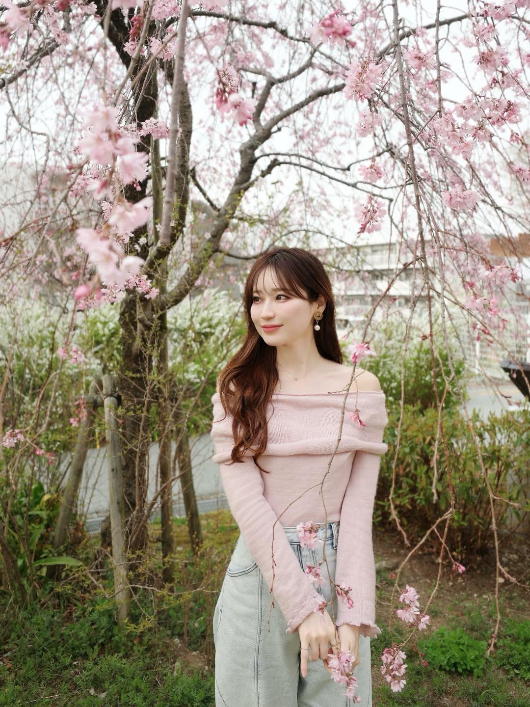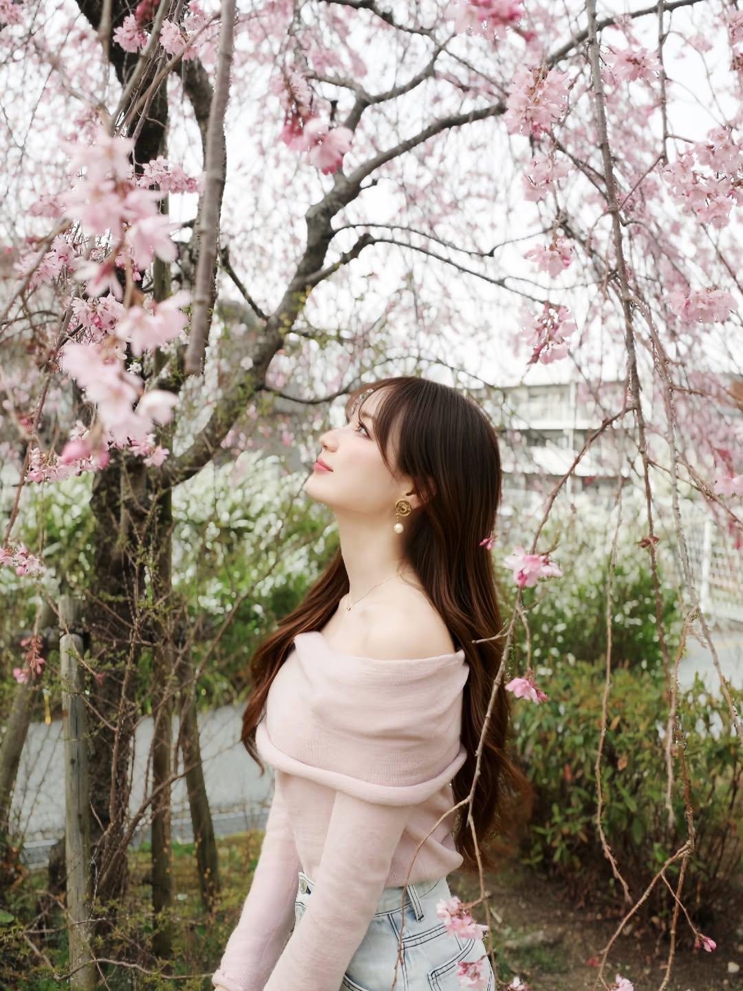 樱花树下,甜美少女,春日暖阳,笑靥如花。