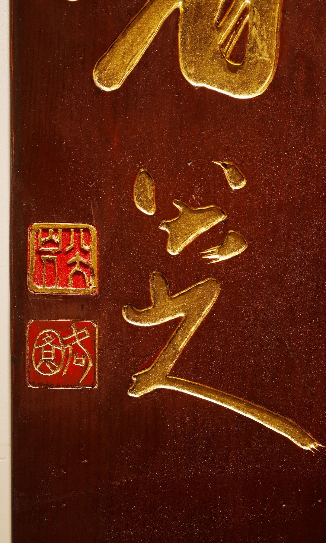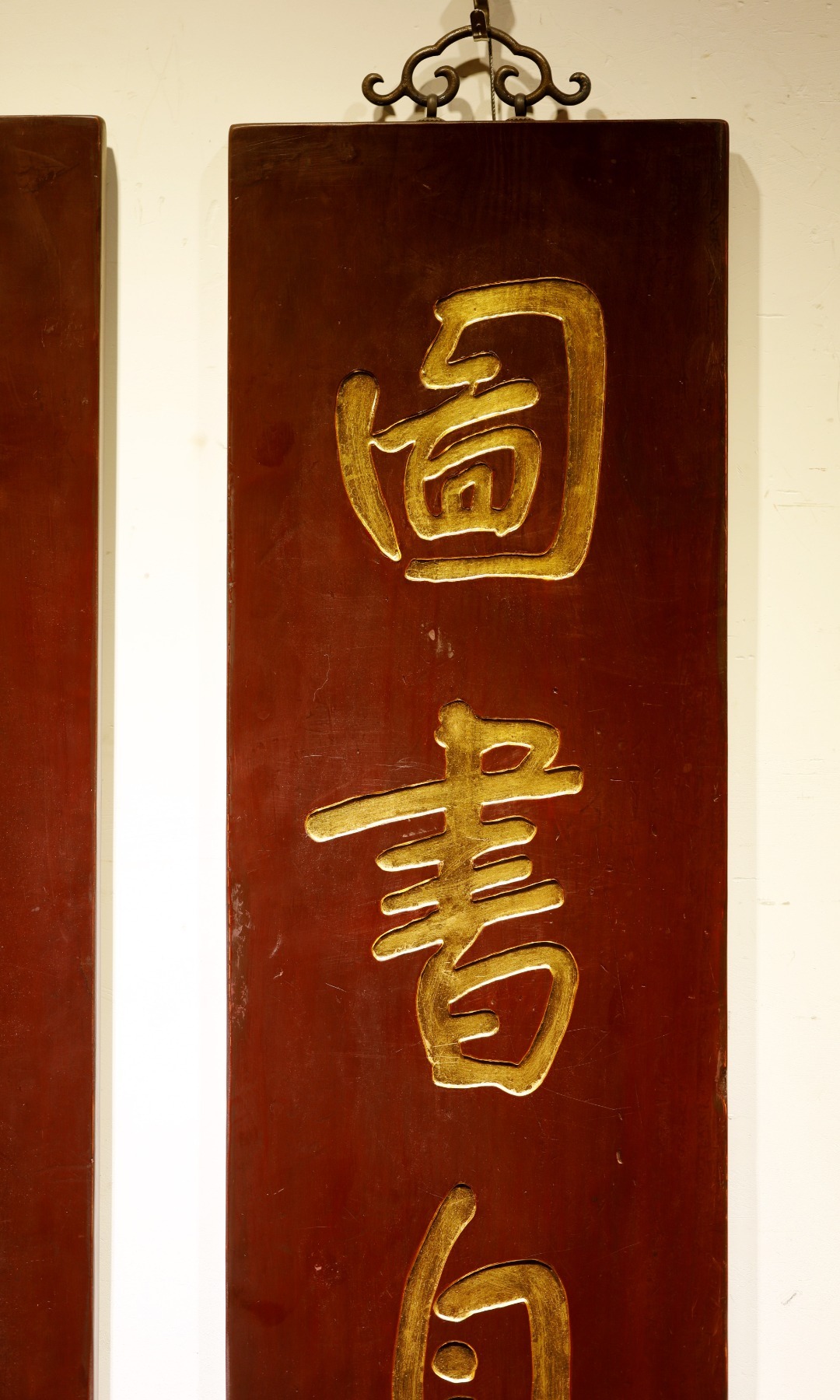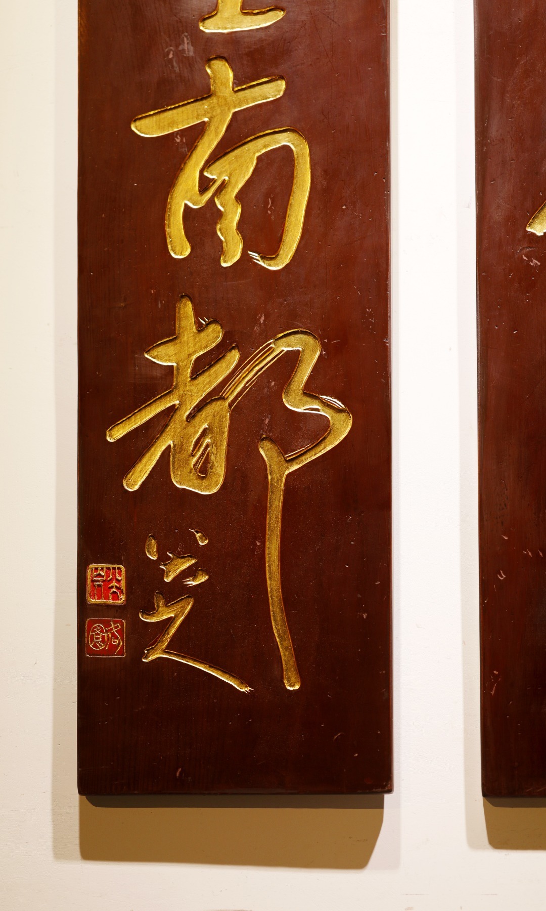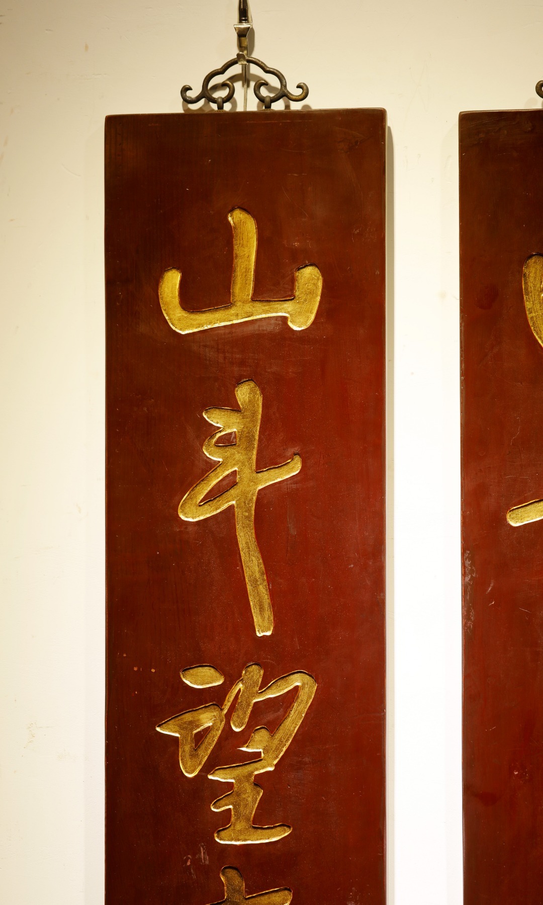 八大山人|老物件 五言联老楠木新作,手工阴刻贴真金箔,题识:“图书自仙室,山斗望