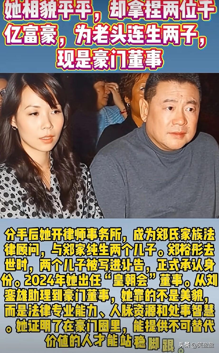 她相貌平平, 却拿捏两位千亿富豪, 为老头连生两子, 现是豪门董事。 你认识她吗