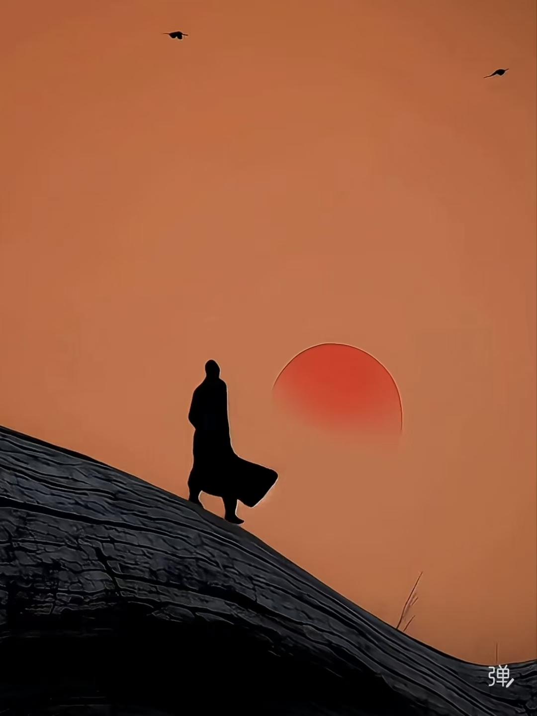 清江引·古道孤影 长虹古道暮烟绕, 苇草苍天杪。 孤身立石阶, 只影迎风峭, 残