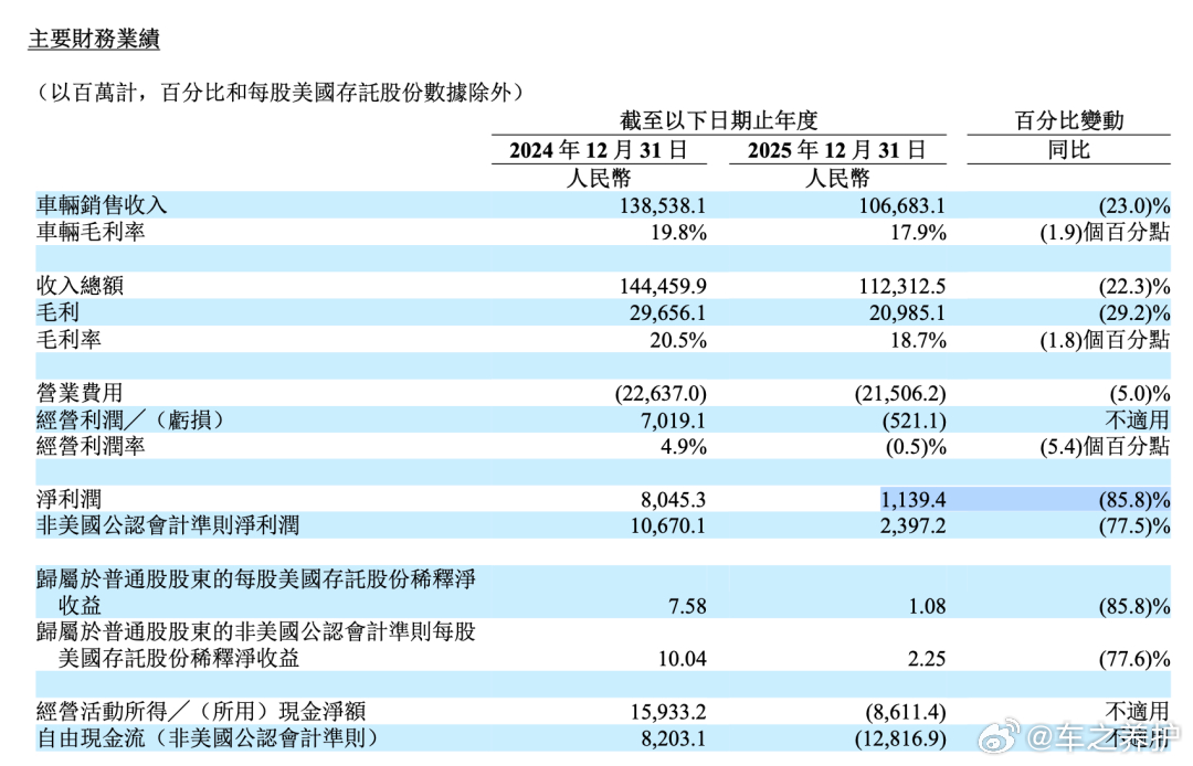 翻一下理想2025年的财报,数字有点扎眼:全年营收1123亿元,同比下滑22.3%;交付40.63万辆,比2024年少了9.42万辆,这是理想有完整销量统计以来首次年度负增长。