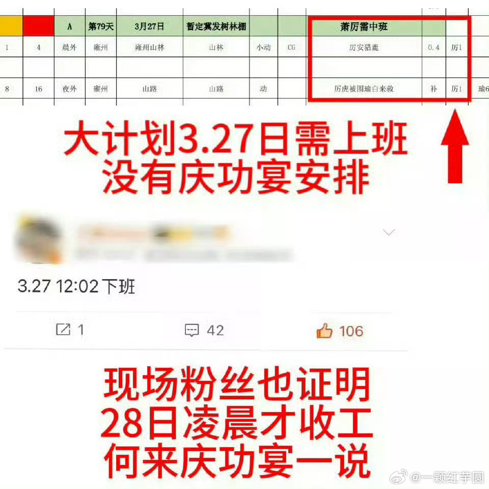 早在3.20,张凌赫 对接就说过庆功宴是假的!而且27确实也在剧组凌晨才收工!!