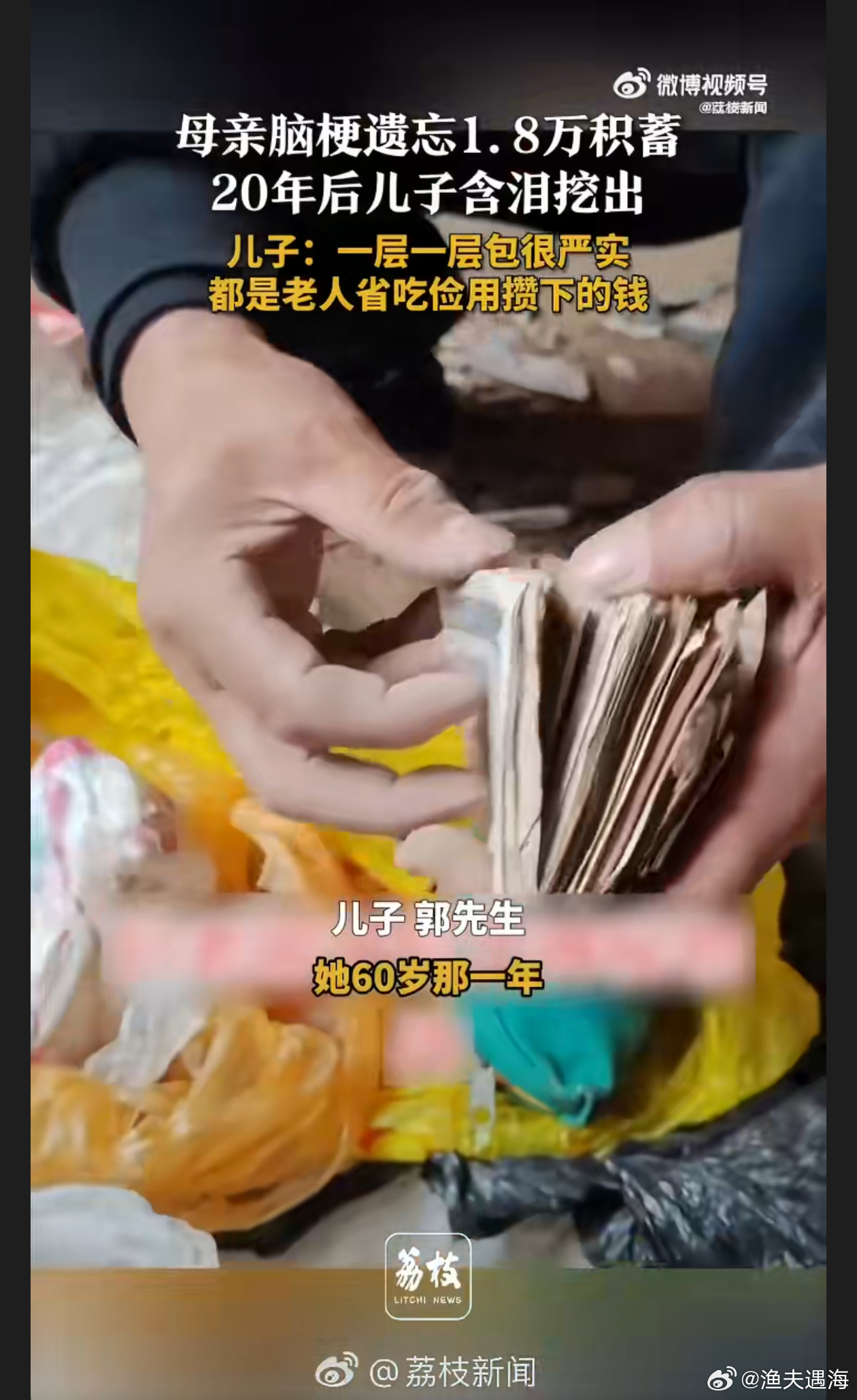 男子回应母亲1.8万埋地里20年后挖出母亲当年辛苦攒钱,无奈因病遗忘,儿子意外挖出。这不仅是一万八千元,更是岁月里勤俭的印记和亲情的沉淀。郭先生将钱交还老人,尽显孝顺。这份跨越20年的“宝藏”,饱含着爱,也见证着家庭温情 。