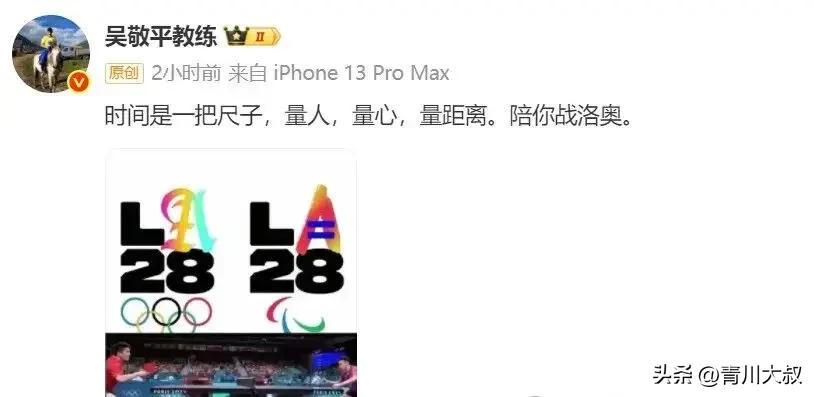 樊振东决定参加2028洛奥了吗? 刚刚恩师吴敬平发文: 陪你战奥运! 虽然没有写陪谁? 但是球迷都知道, 肯定是樊振东! 其实早年吴敬平在接受采访的时候说过:小胖的打法很合理, 以他的身体条件, 打到2028年洛杉矶奥运会, 没问题的! 如果东哥回归, 男乒问题将迎刃而解! 东哥不仅能亲自上阵, 关键是他的加入, 带给队友的信心和那份踏实感, 更是宝贵!