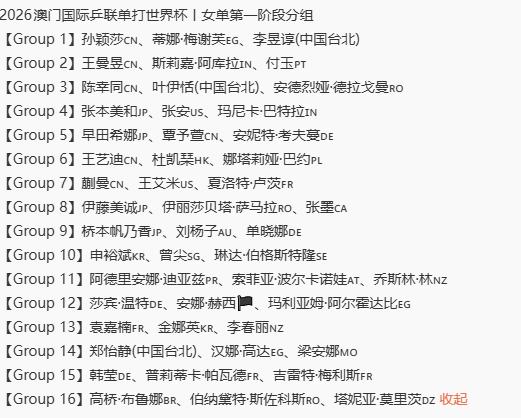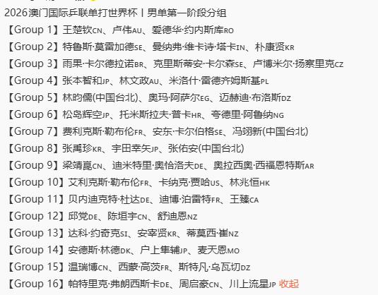 澳门世乒赛小组赛,谁的签位不好? 孙颖莎、王曼昱、王楚钦的都不错, 因为这次是蛇形排序, 他们在小组内, 都不会差了。 小组赛可能输球的有, 世青赛冠军覃予萱, 她的两个对手早田希娜和考夫曼都很强。 周启豪也有些悬, 对手是弗朗西斯卡和川上流星。 好在川上流星没抽中温瑞博, 世青赛时小温输给他了。 陈垣宇也有些悬, 邱党的前三板发动很快, 如果图图发动慢了, 很容易输。 你觉得还有哪位, 在小组赛容易输球?