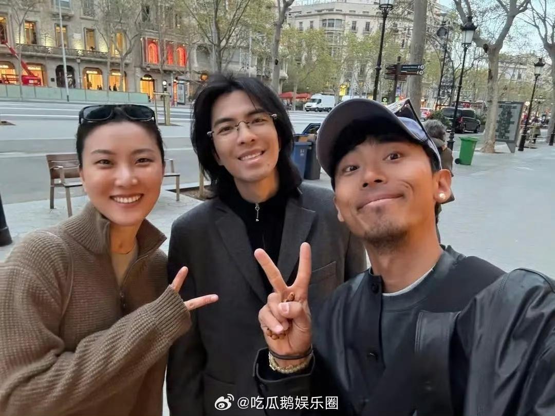 萧敬腾和老婆林有慧现身巴塞罗那街头,他留着一头长发,脸部素颜,跟路人很自然的合照