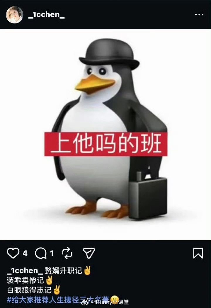 陈牧驰的前妻罗晨发文暗讽,说给大家推荐人生三大捷径名著:赘婿升职、装乖卖惨、白眼