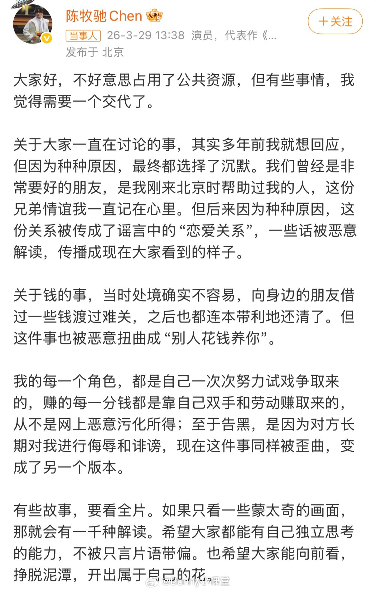这是陈牧驰前妻吗?疑似陈牧驰前妻回应