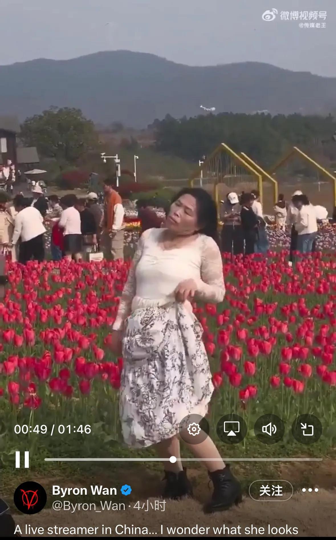 在X上有人发了这位美女在做直播的视频,说“一位来自中国的直播主播……我很好奇她开