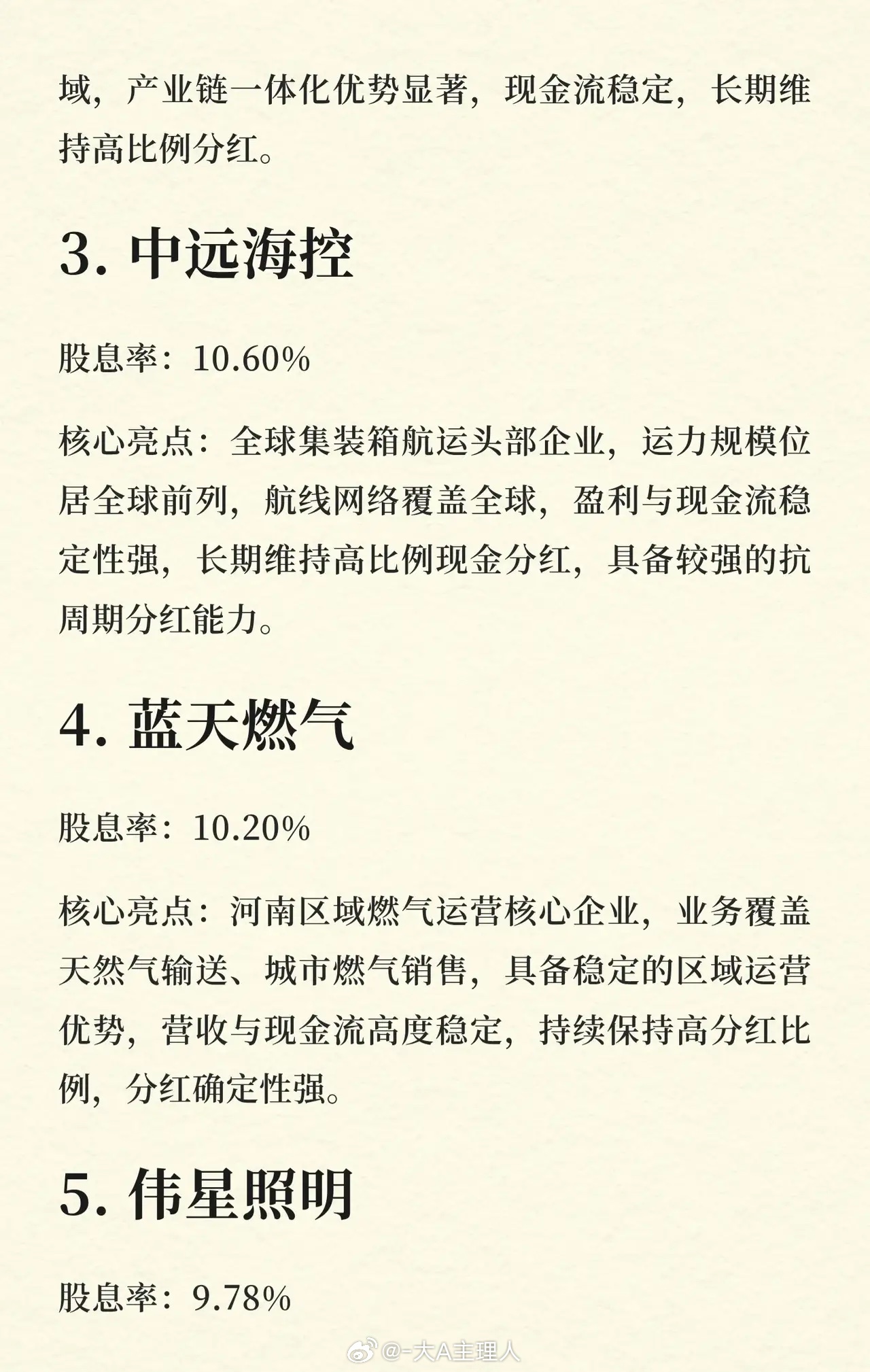 前5名高股息企业速览: