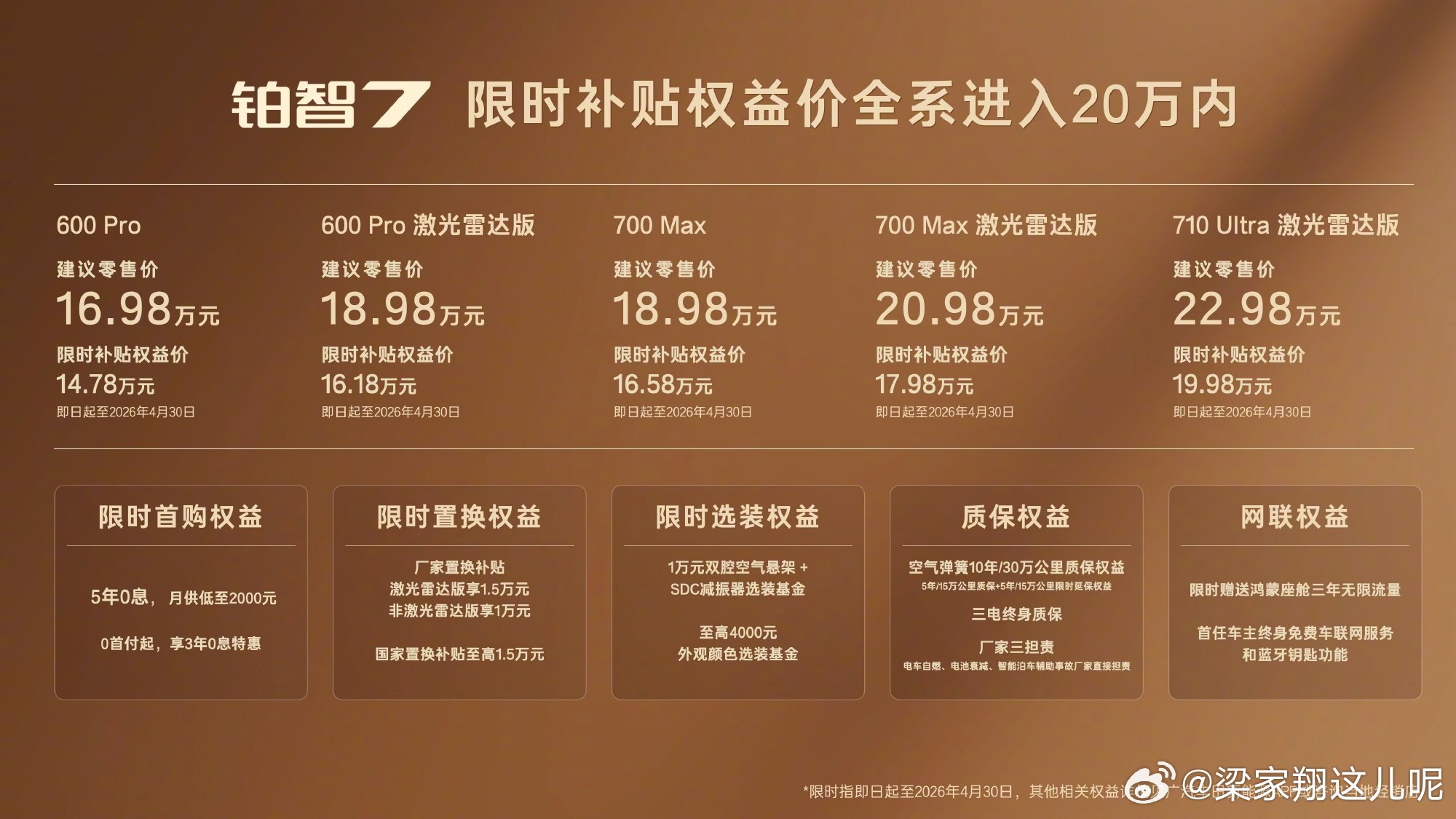 补贴权益后全系进入20万元内,同时推出五大上市权益。