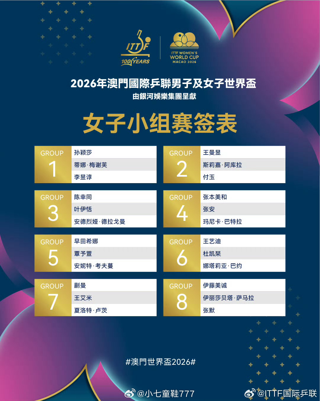 澳门世界杯女单签表