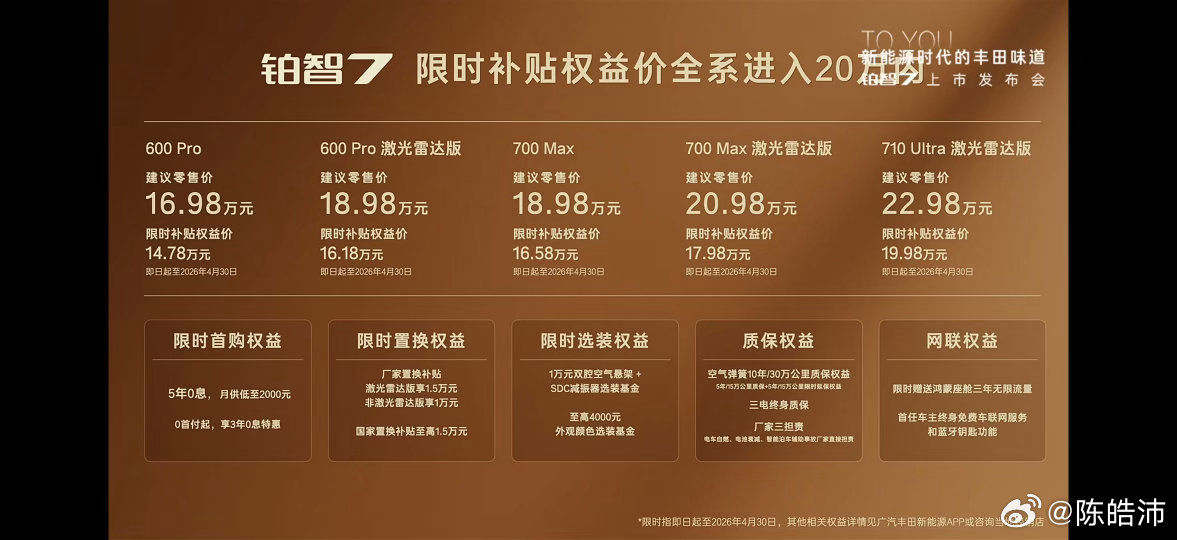 癫啊!铂智7的上市价比预售价还便宜了1万,还有一堆权益可惜600版本不能选空悬和智驾,幸好700 MAX选上也不用20万!
