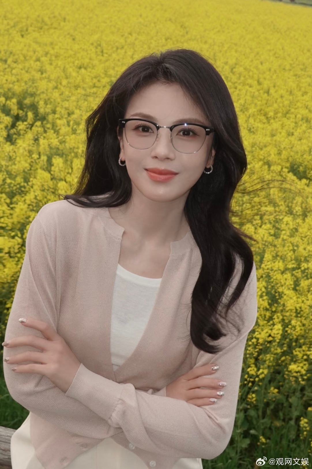 刘涛油菜花海眼镜造型 在春天油菜花海中戴眼镜的刘涛,这个造型和妆容好美!明媚又知性!