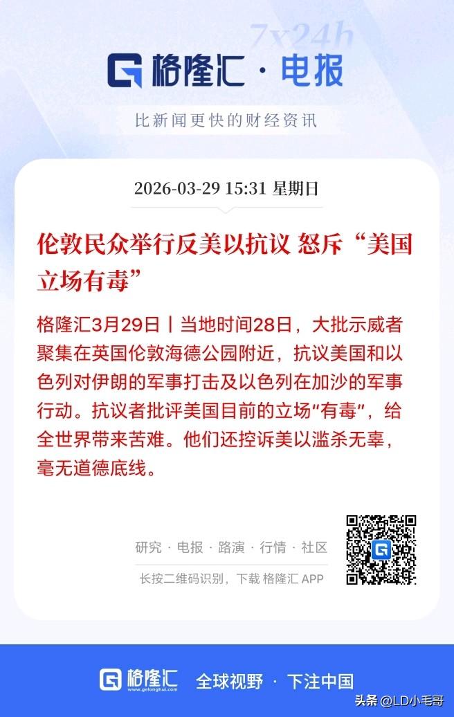 周末最大的利好来了!希望下周A股能全面反弹修复吧。 这个大利好就是美国大范围发生反特朗普游行,光是周六一天就是超3000场,预计参与人数将达到900万,创历史记录。 而且伦敦也开始出现这样的情况。 这无疑对川普而言会是一个大的打击,而且这次游行的地方不少还是共和党的基本盘。 这说明了什么? 我想答案很明显,老美内部越来越反战了,这么搞下去川普还能继续加码战争吗? 如果反战持续,是有利于倒逼川普加速结束伊朗战争的。 而中东局势缓和有利于大A的修复!拭目以待吧!
