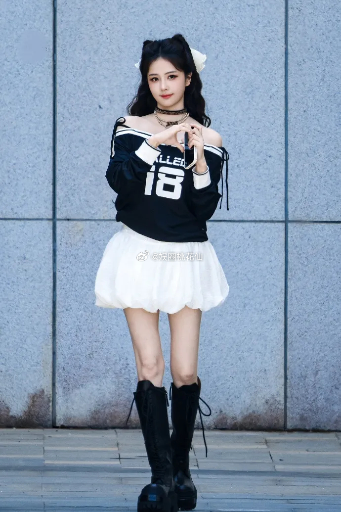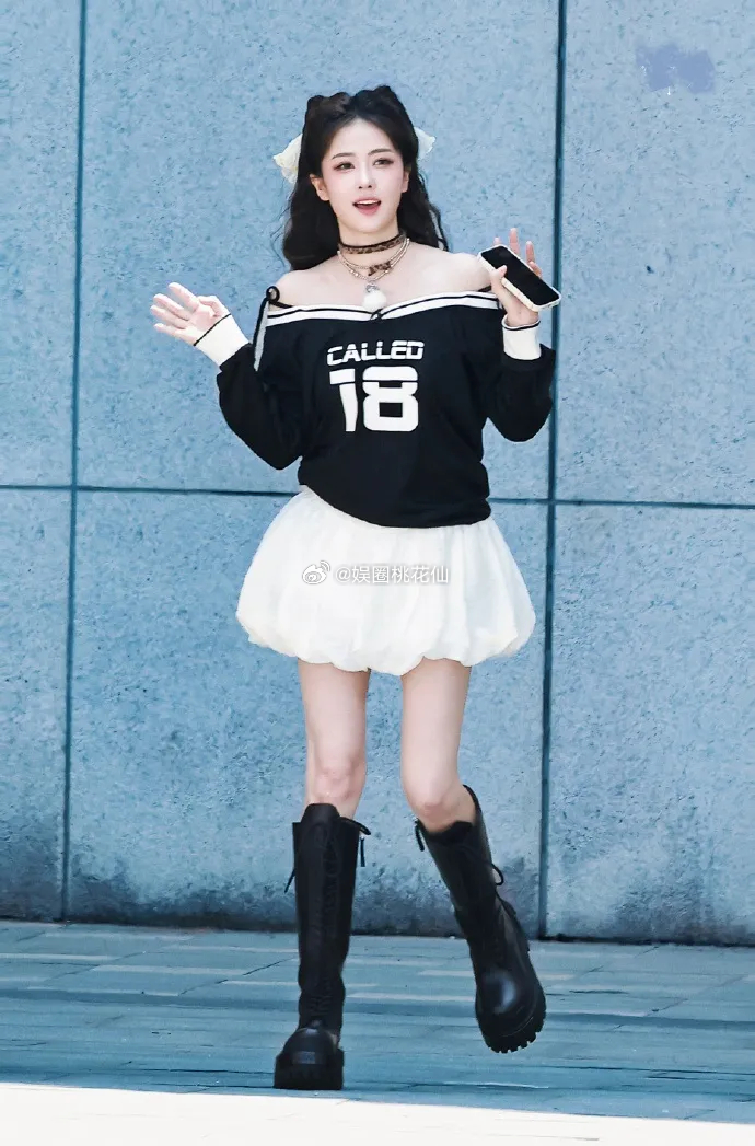 白鹿脚踩黑色的高靴,秀出了显得的美腿,走路带风,还有点小酷的感觉。