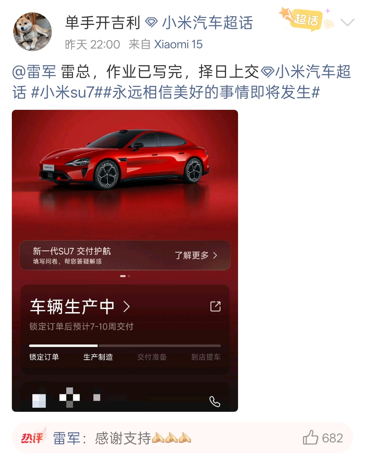 被雷军回复网友已购入小米新SU7这谁能卖的过小米,有事雷军是真回复,回复了米粉是