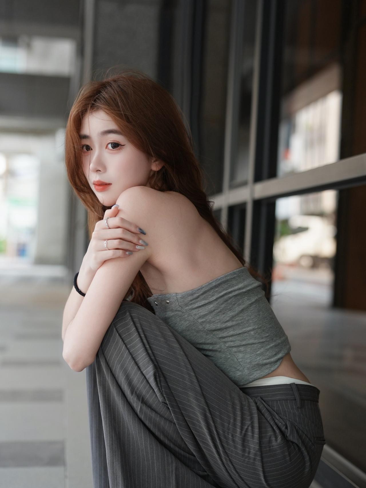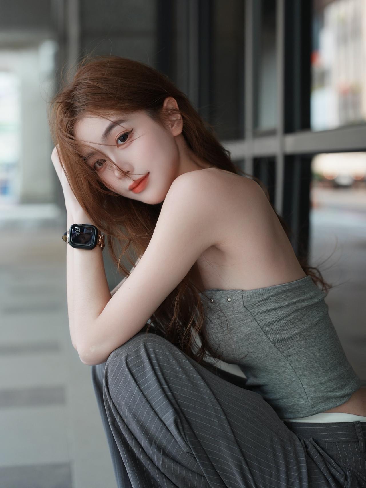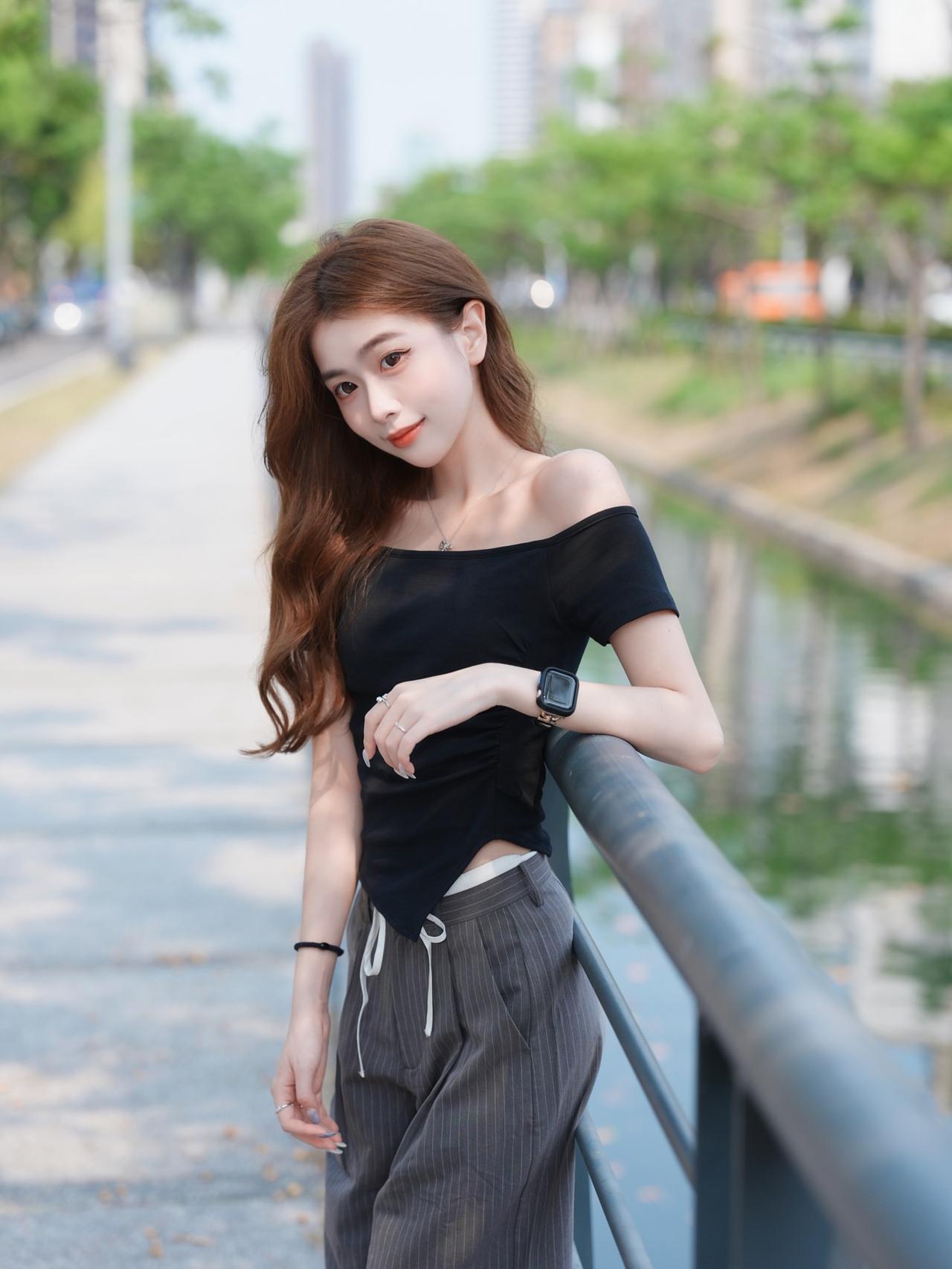 都市女孩倚栏自拍,时尚穿搭,清新自然好看又舒适的穿搭