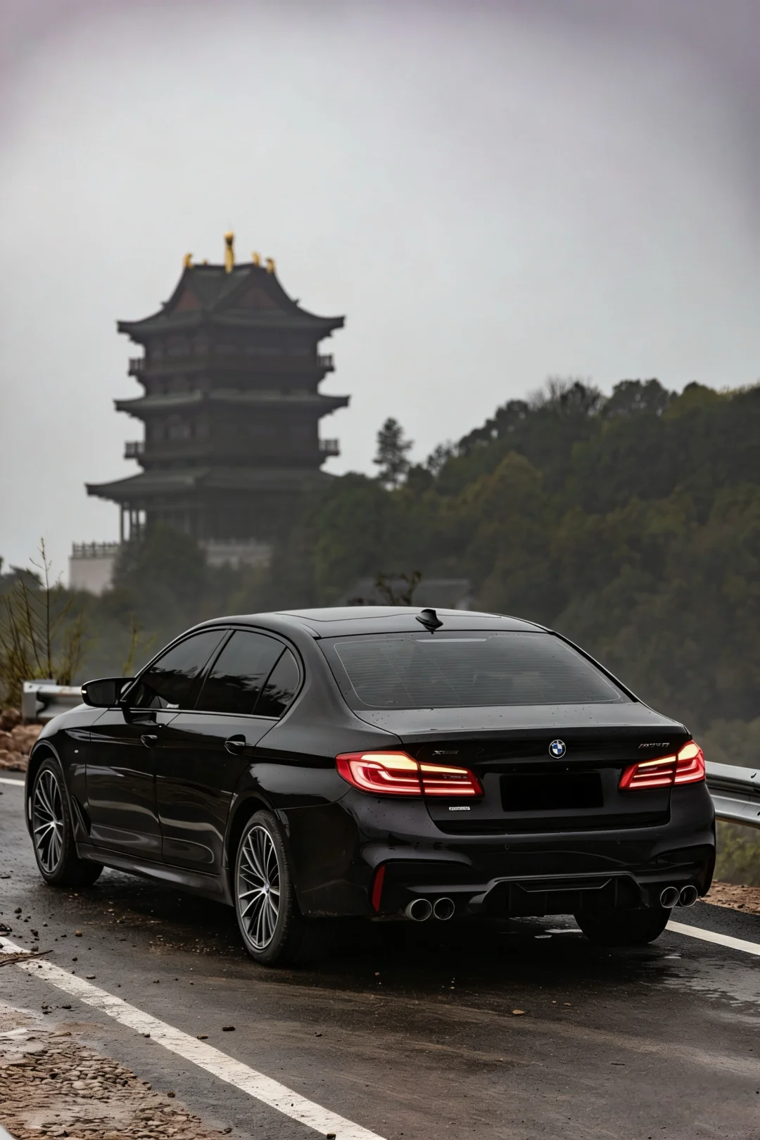 雨后山雾里,宝石青才真正显露出它的底色, 不是沉闷的纯黑,是被水汽浸润的曜石光泽, 水珠挂在漆面上,像把整片山雾都揉进了金属颗粒里, 远看是沉稳的黑西装,近看是藏着星光的黑曜石, 连湿滑路面的反光都衬得它更有层次,低调得刚好, 高级得不动声色。