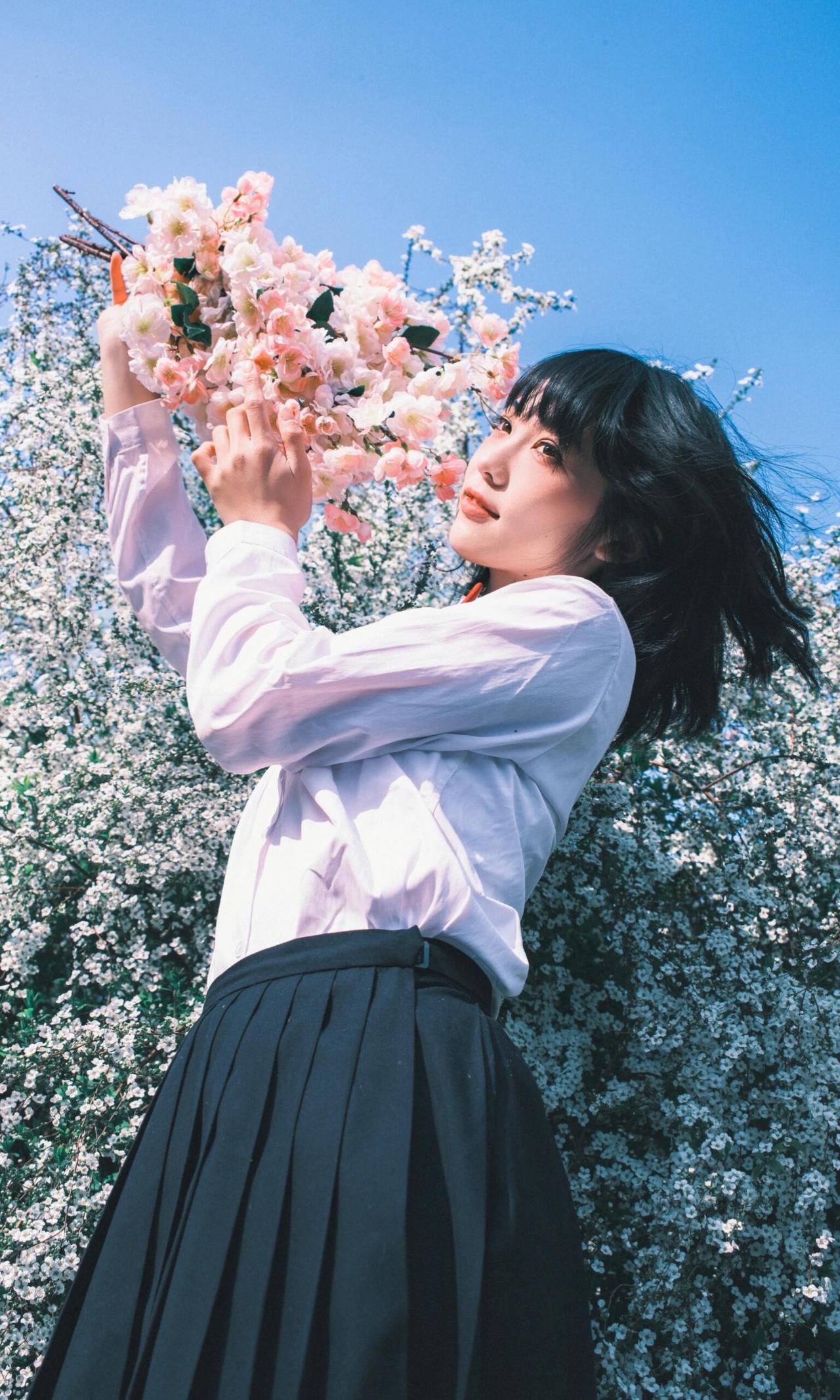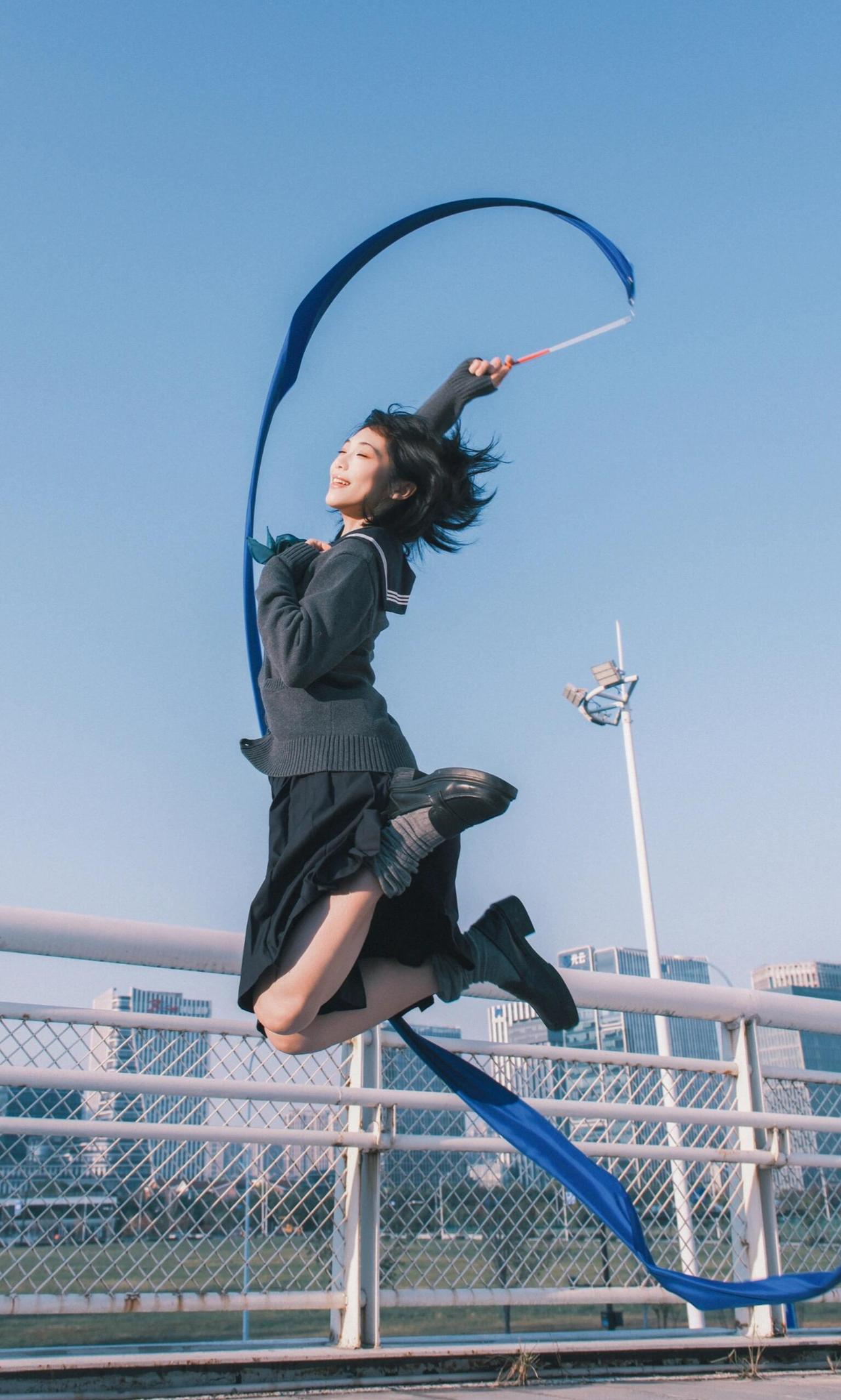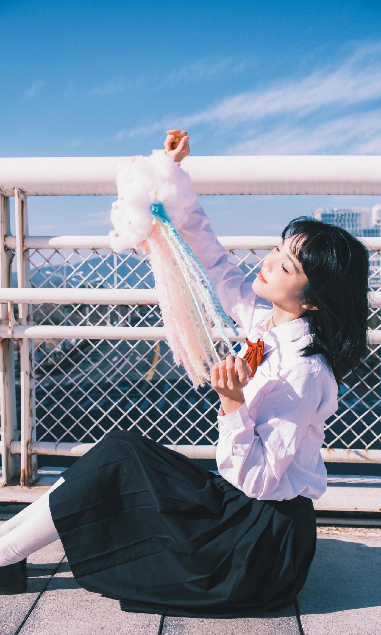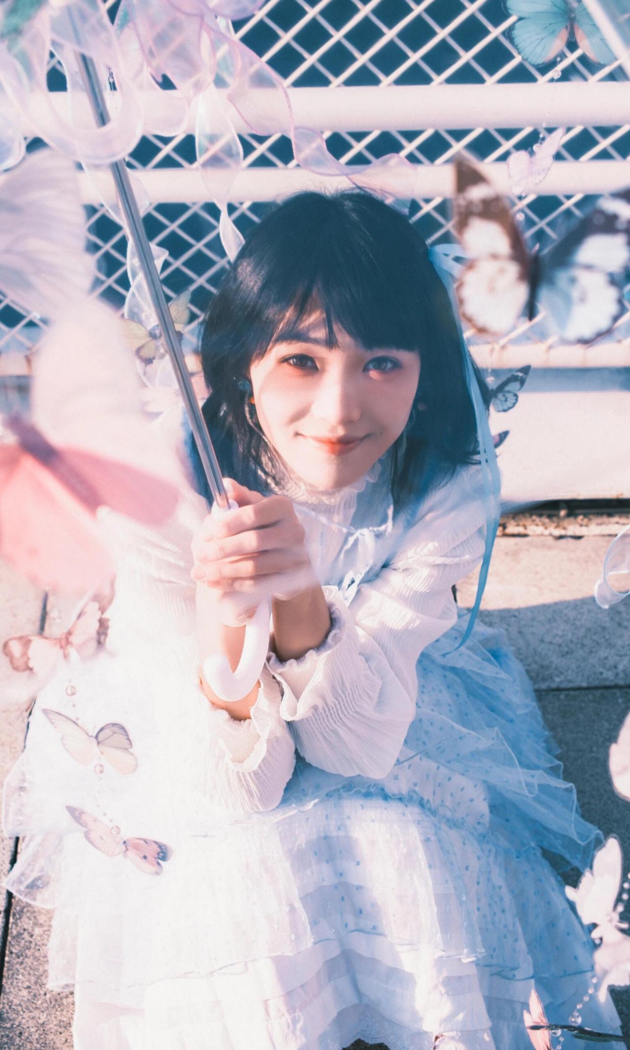作品以木质花架为框架,将人物包裹其中,框架构图不仅隔绝了背景干扰,更让人物成为视觉绝对焦点,契合青春人像的叙事感营造。漫天飞舞的白色蝴蝶道具与指尖停留的蓝蝶形成呼应,虚实交织的布局,赋予画面极强的童话感与想象力,完美诠释了青春里的烂漫与诗意。 人物闭眼轻触蝶翼的姿态,松弛又温柔,传递出沉浸在美好中的安然情绪,面部神态的细腻捕捉,让情绪表达更具感染力。光线选择侧逆光,勾勒出人物发丝的轮廓,同时让蝴蝶翅膀的纹理清晰可见,光影的明暗过渡柔和,既突出了人物轮廓,又保留了背景花架的细节层次。色彩上以纯净蓝天为底,白色蝴蝶与浅蓝服饰形成统一调性,蓝蝶作为视觉亮点打破单调,整体画面干净通透,没有冗余元素,将青春的懵懂与美好具象化,是一组极具故事性的青春人像作品。