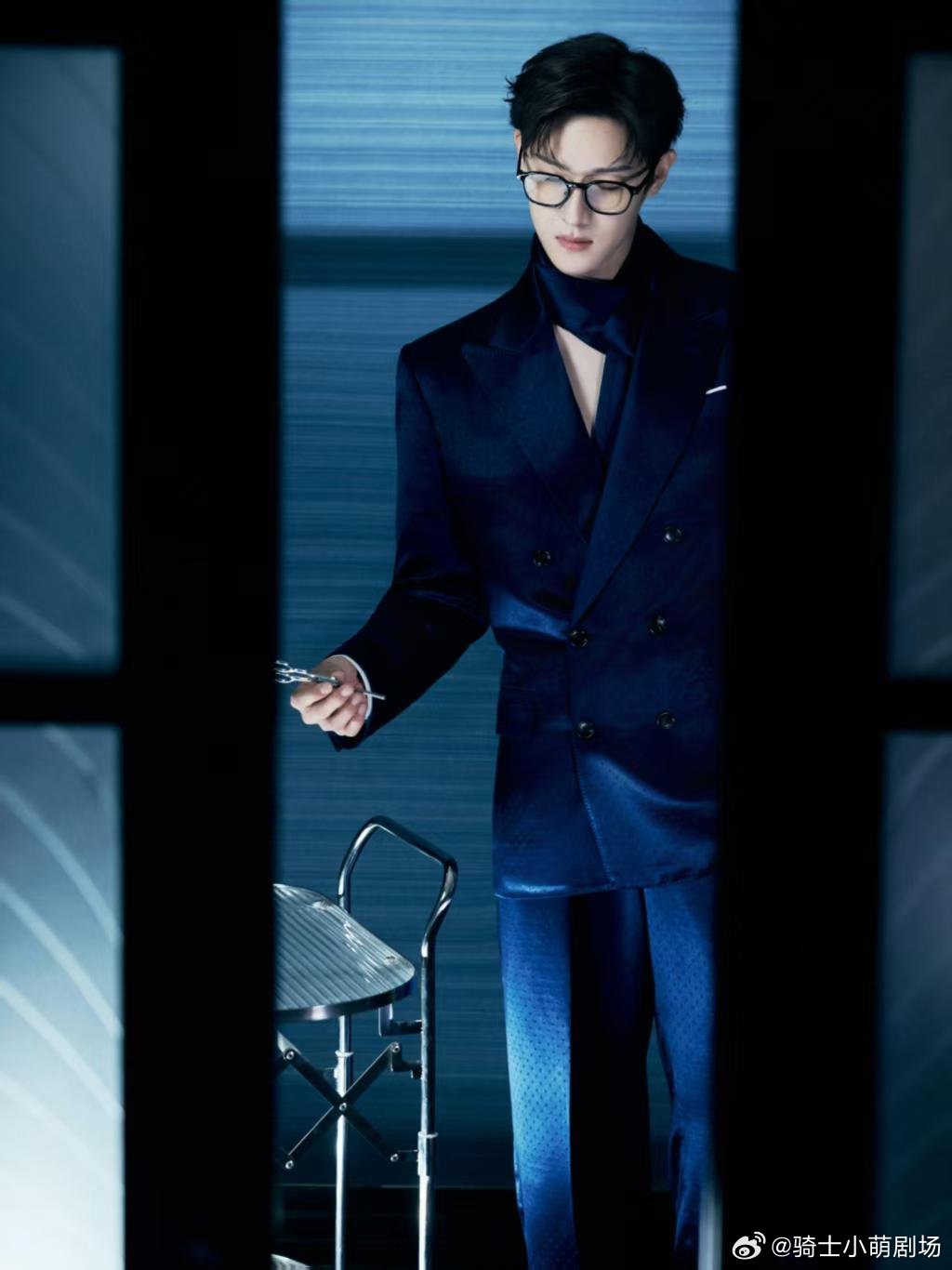 李昀锐真空丝带西装深蓝色真空丝带西装气场拉满,利落又性感,禁欲与张扬拿捏得恰到好处,戴镜与不戴镜切换,两种气质都极具魅力