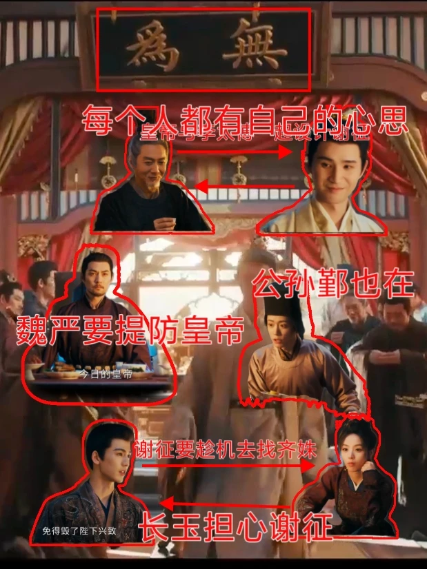 皇帝与李太傅一起设计谢征、谢征要趁机去找齐姝、魏严要提防皇帝、长玉担心谢征。