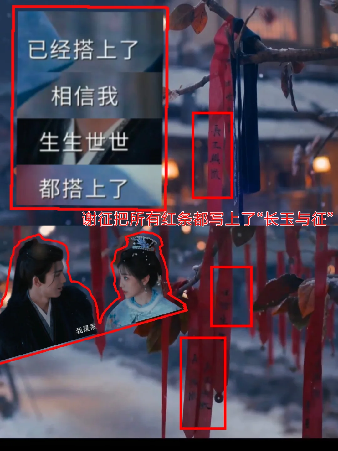 ❤️长玉与谢征一起搭发带,谢征把所有红条都写上了“长玉与征”。
