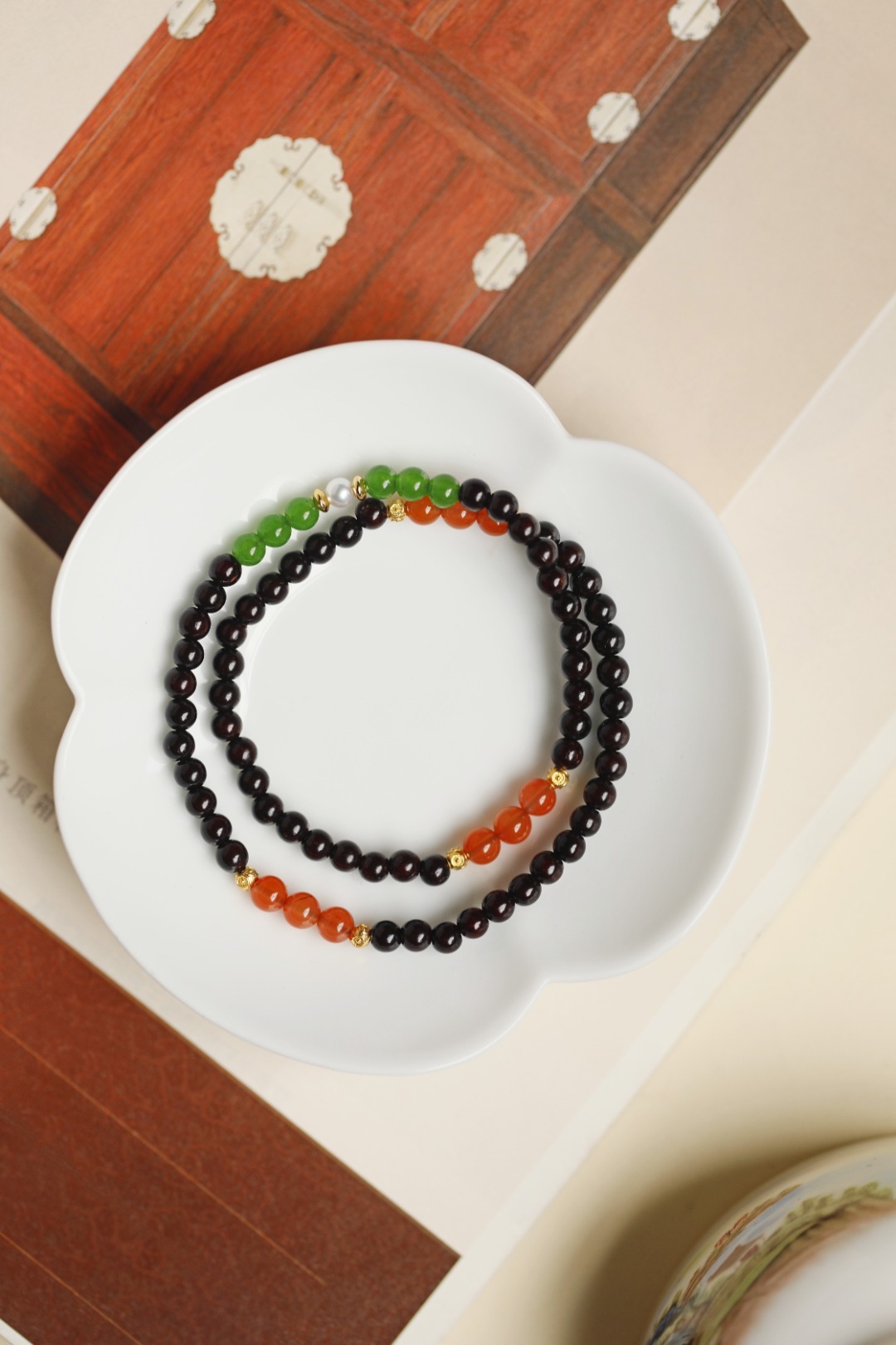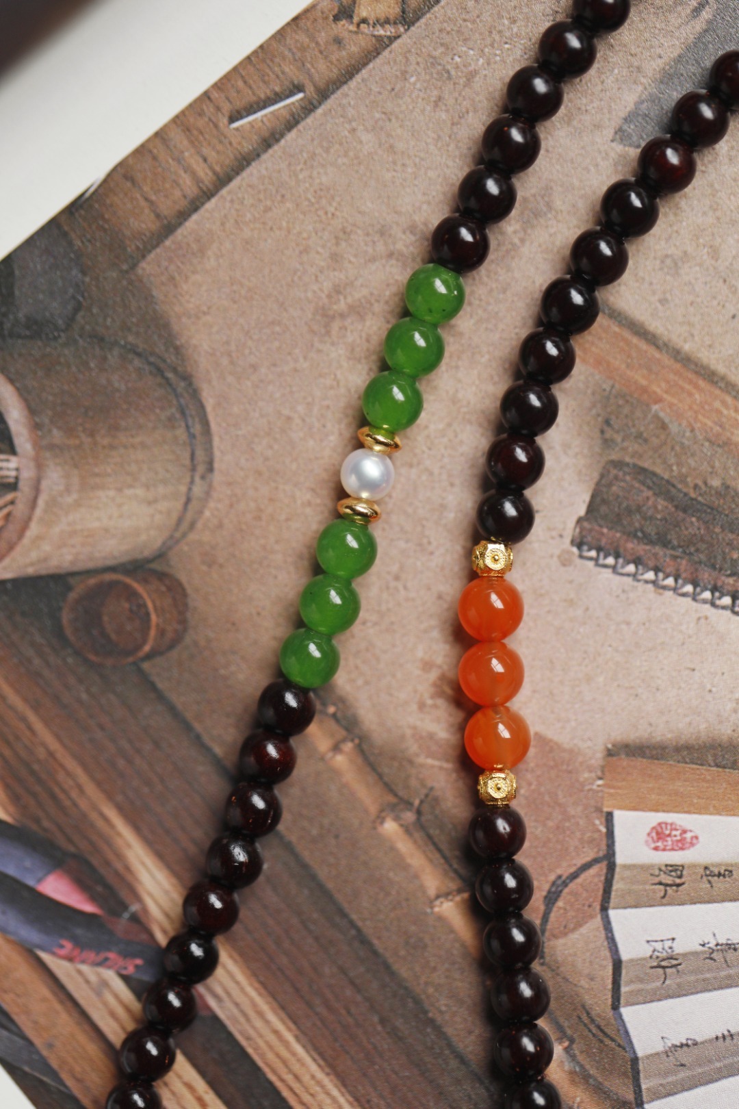 配件:珍珠、南红、银镀金、碧玉 紫檀 原创【映月】4mm 60颗