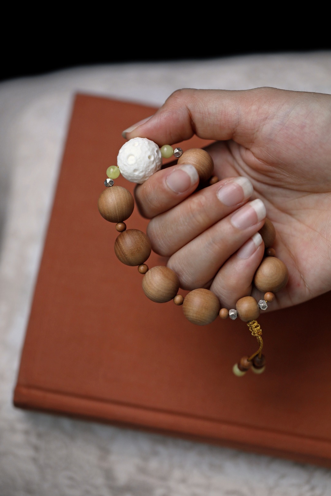 天然老山檀香,水波纹理,手感细腻润滑,如婴儿之肌肤;端庄的气度,佩戴显高雅。