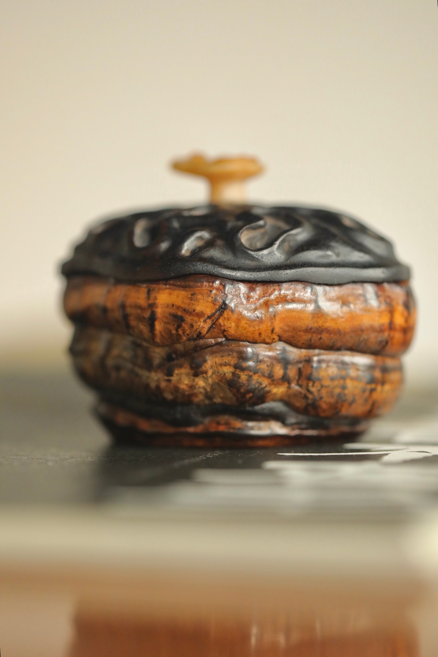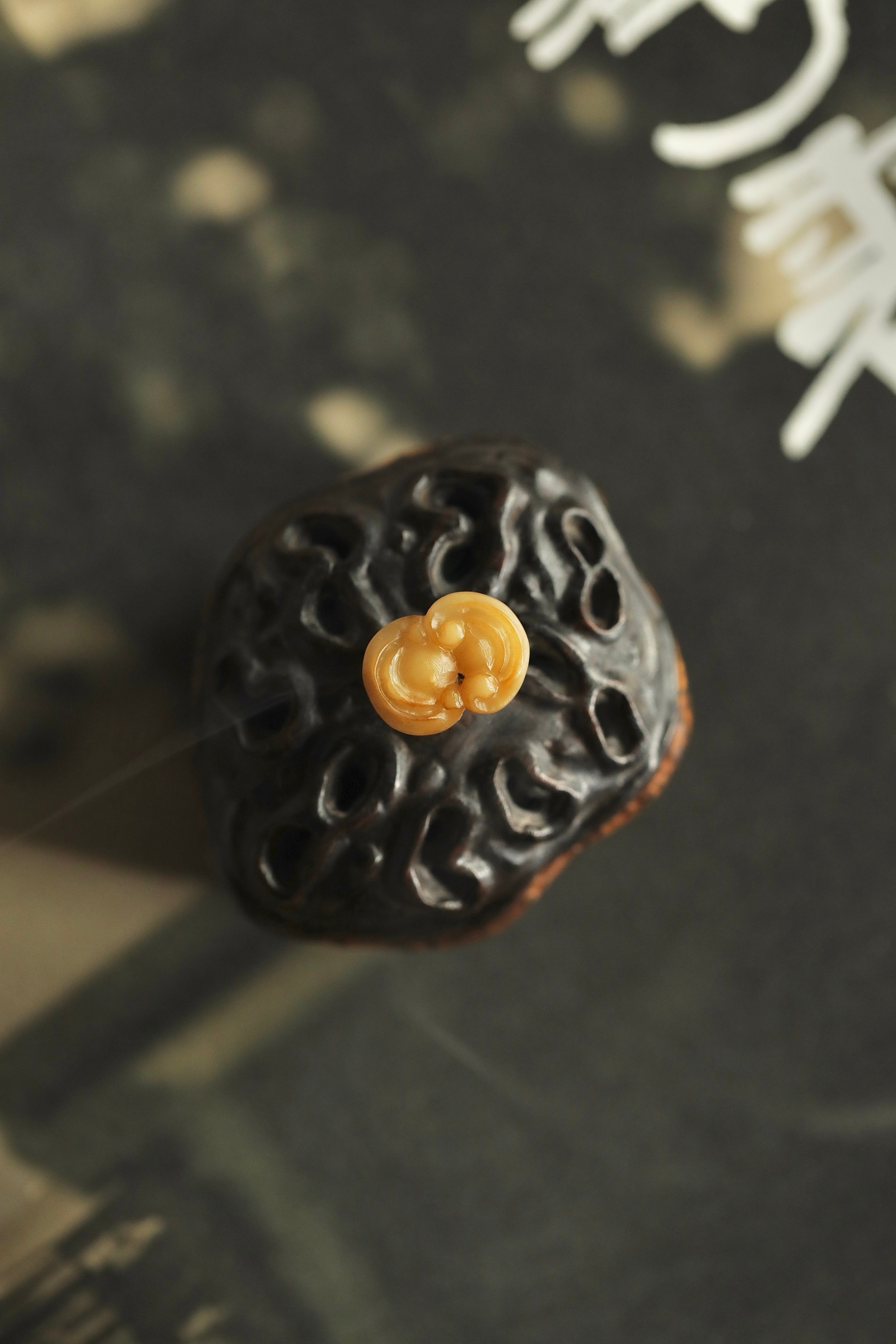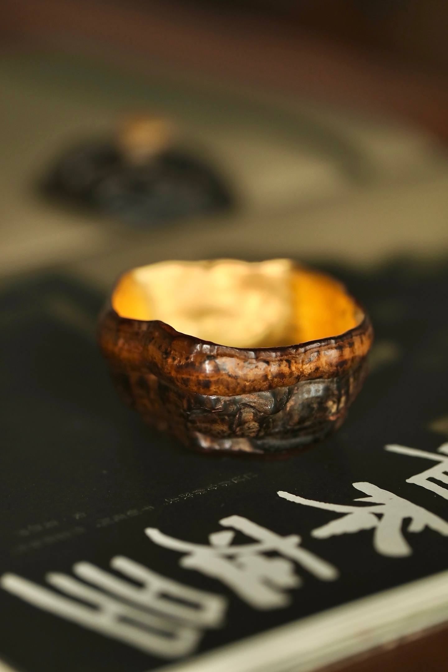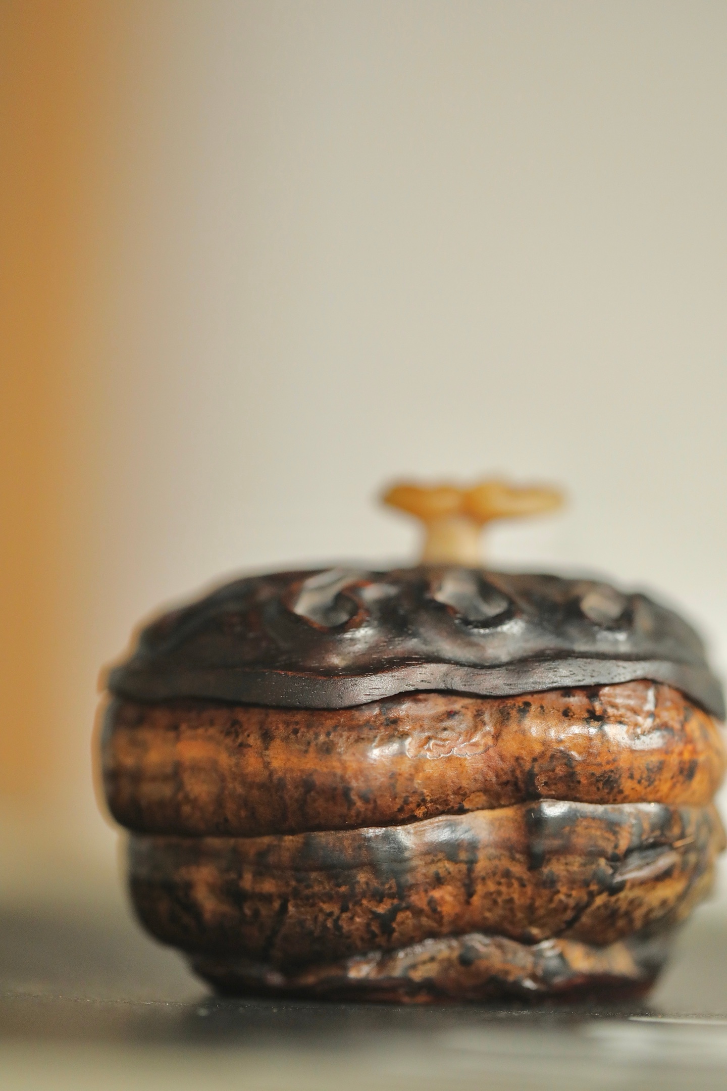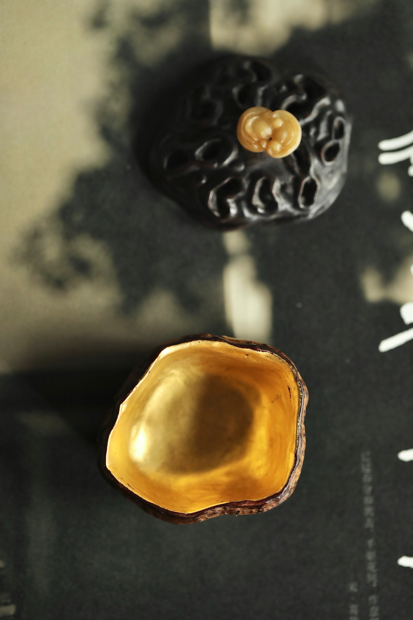 灵芝髹金 | 小琴炉外取灵芝天然之态,纹理虬结,古拙苍劲;内膛精工髹金,流光溢彩