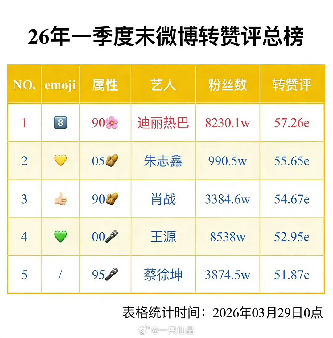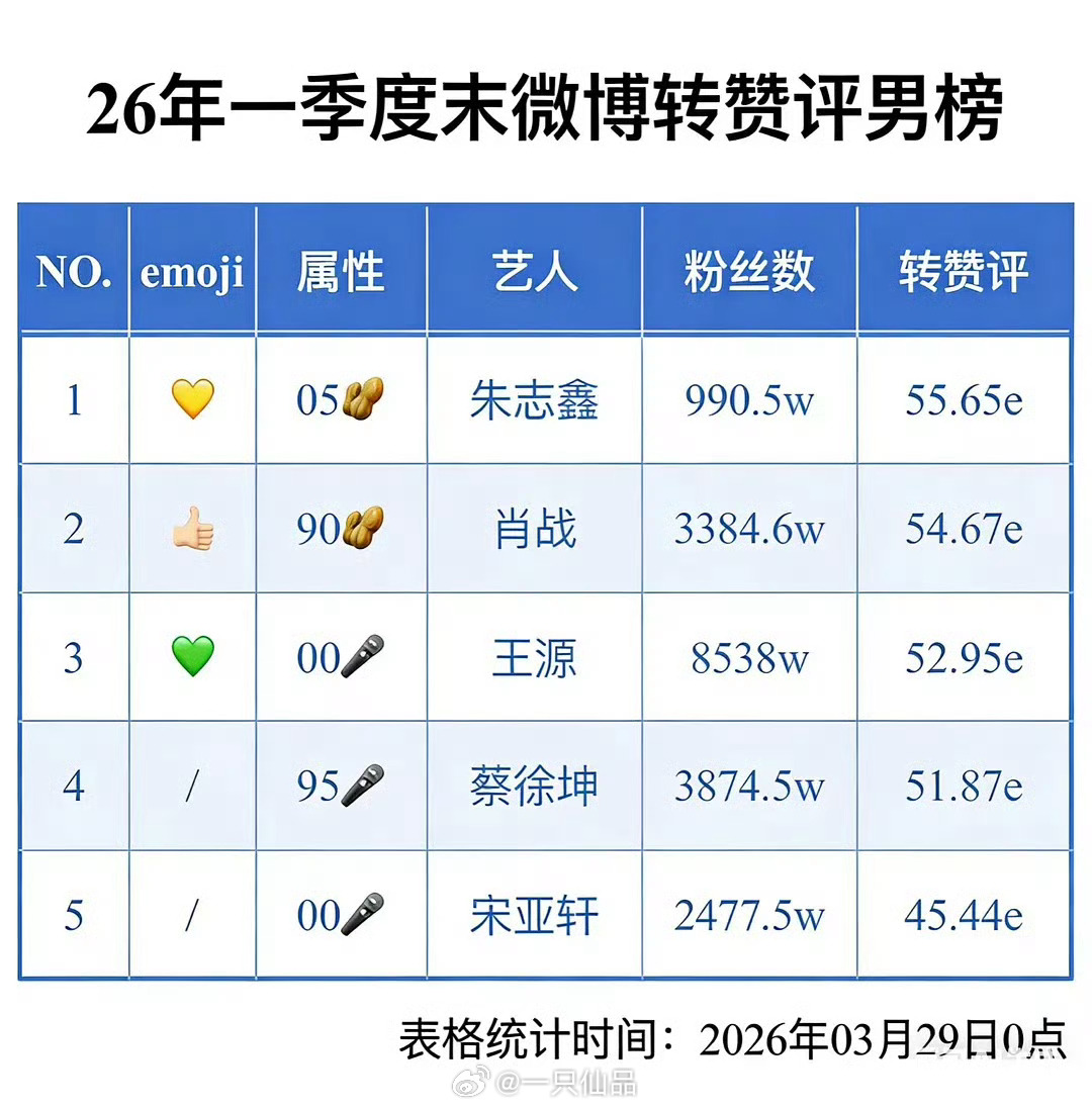 2026第一季度微博zzp排名朱志鑫内娱第二、男艺人第一、男演员第一朱志鑫是真的