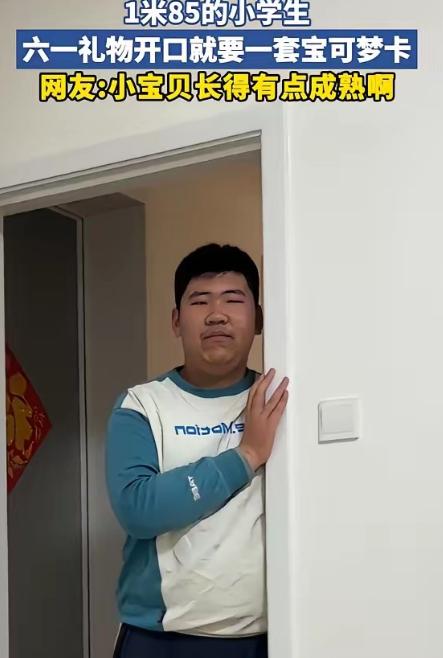 伤害性不高,侮辱性很强!安徽,一位妈妈在网上晒出六年级的儿子提前朝她要六一儿童节礼物,不过网友却把注意力都放在了男孩一米八五的身高和长相上面。网友:你家小宝贝长得有点成熟啊 说白了,这就是一场大型“反差暴击”现场——六年级小朋友还没褪去稚气要六一礼物,可那张脸和那身高,直接把网友看懵,连儿童节的话题都被硬生生带偏,主打一个伤害性不高,侮辱性极强。 安徽这位妈妈本来挺开心,想着自家娃还惦记着六一儿童节,就随手拍了段视频晒到网上,吐槽儿子人还没长大,要礼物的心思倒挺急。 可谁能想到,评论区压根没人讨论礼物,全在刷屏惊叹:这孩子确定是六年级?怕不是拿错了身份证吧! 镜头里的男孩,站在妈妈身边比妈妈高出一个大半个头,官方说一米八五,我感觉实际看着可能还要高一点,肩宽背直,身形完全就是个成年人的模样。 更离谱的是他的长相,没有一点小学生的青涩,眉眼间透着一股成熟感,说二十来岁真的有人信,甚至还有网友调侃,这要是去买火车票,估计都得被要求出示身份证,根本享不到学生优惠。 有人忍不住吐槽,不是说身高高就不正常,可小学阶段长到一米八五,也太离谱了吧? 我真见过年龄小个子大的孩子,比如邻居家的小男孩,五年级就一米七多,但人家面相还是圆嘟嘟的,眼神里全是小孩子的懵懂,一眼就能看出是个孩子。 可这个安徽男孩不一样,不光身高超标,连神态都透着成熟,一点都没有小学生的稚气,说他是刚上大学的学长,比说他是六年级学生更有说服力。 说到这,我想起之前有网友分享,他在深圳地铁碰到过一个小学生,长得比他一米八五的同事还要高,估计得有一米九,站在人群里格外扎眼。 一开始大家都以为他是个刚毕业的年轻人,可看他动作又透着一股小孩子气,一会儿扒着扶手晃来晃去,一会儿又对着窗外指指点点,好奇之下有人问他多大,他脆生生地说自己读五年级。 当时我那网友和他同事直接震惊到说不出话,愣了好一会儿才反应过来,连说现在的孩子长得也太着急了。 还有不少网友吐槽,这说不定就是从父母开始,垃圾食品轮番轰炸下的产物,孩子怕是性早熟了。 我感觉这话也不是没有道理,据说现在儿童性早熟的发病率已经达到了0.43%,也就是说每230个孩子里就有1个性早熟患者,而且发病年龄越来越小。 以前我们小时候,小学阶段能长到一米六就已经是“巨人”了,哪有这么多一米八以上的小学生? 以前的孩子零食就是辣条、干脆面,偶尔吃一次,现在的孩子,炸鸡、汉堡、奶茶、各种含糖饮料轮番吃,还有家长总想着给孩子补身体,买各种保健品,这些东西里的激素和添加剂,说不定就是导致孩子提前发育的隐形推手。 听说性早熟的孩子,早期身高会快速增长,年生长速率可能超过8厘米,但因为骨骺提前闭合,成年后反而可能比正常身高矮10-15厘米,还可能引发自卑、焦虑等心理问题。 不过也有人说,现在生活条件好了,孩子营养跟上了,身高高点也正常,不能一棍子打死就说是性早熟。 以上全是我个人看法,不代表任何立场,也没有评价这件事本身,就是单纯和大家一起聊聊这个现象。你们觉得这个六年级男孩长得成熟吗?你身边有没有这种身高远超同龄人的小学生?欢迎在评论区说说你的看法。