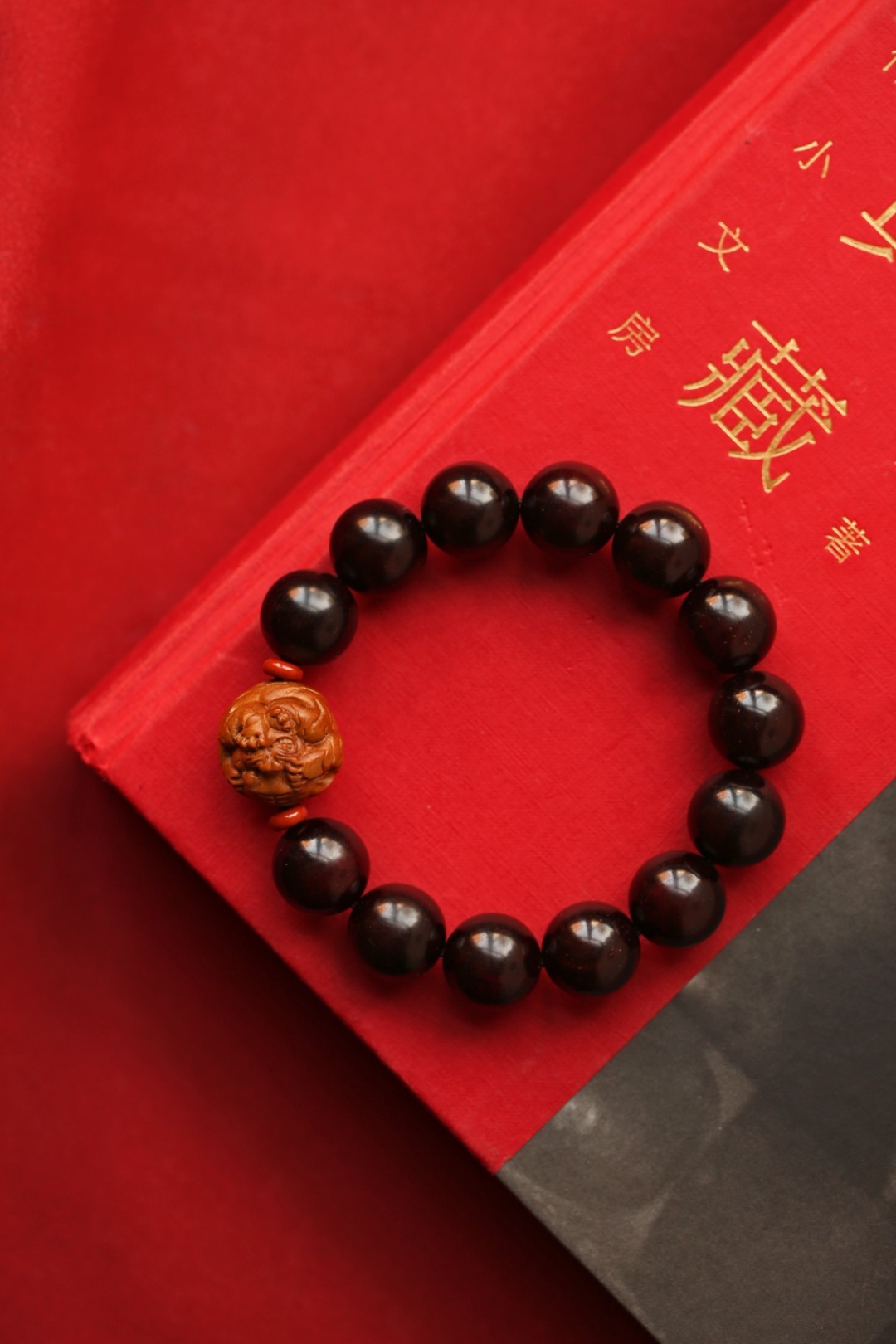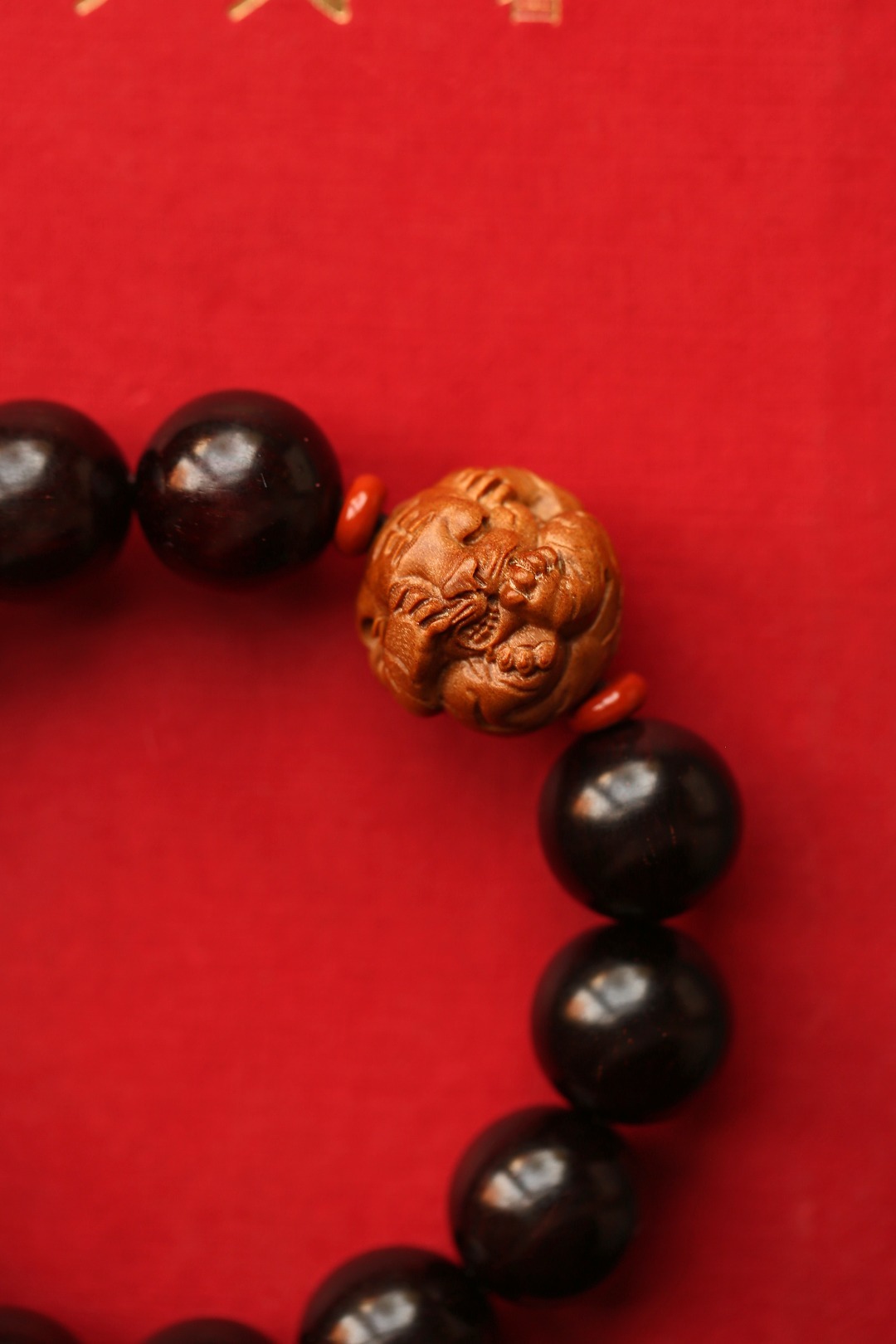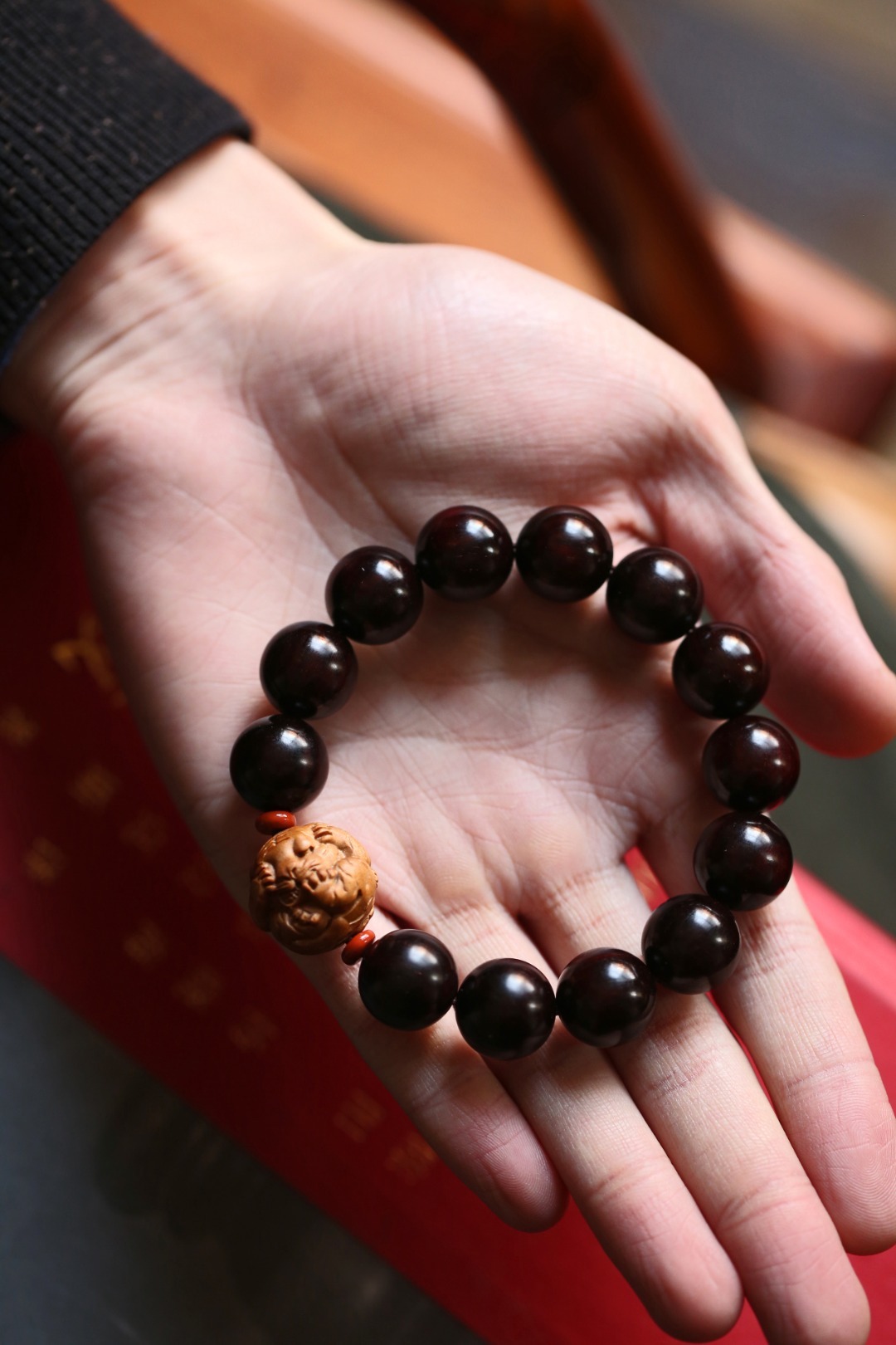 小叶紫檀老料为底,搭配老山檀香小老虎,佩戴大气。配件:老山檀香 红石隔片 紫檀 原创【寅瑞】15mm13颗