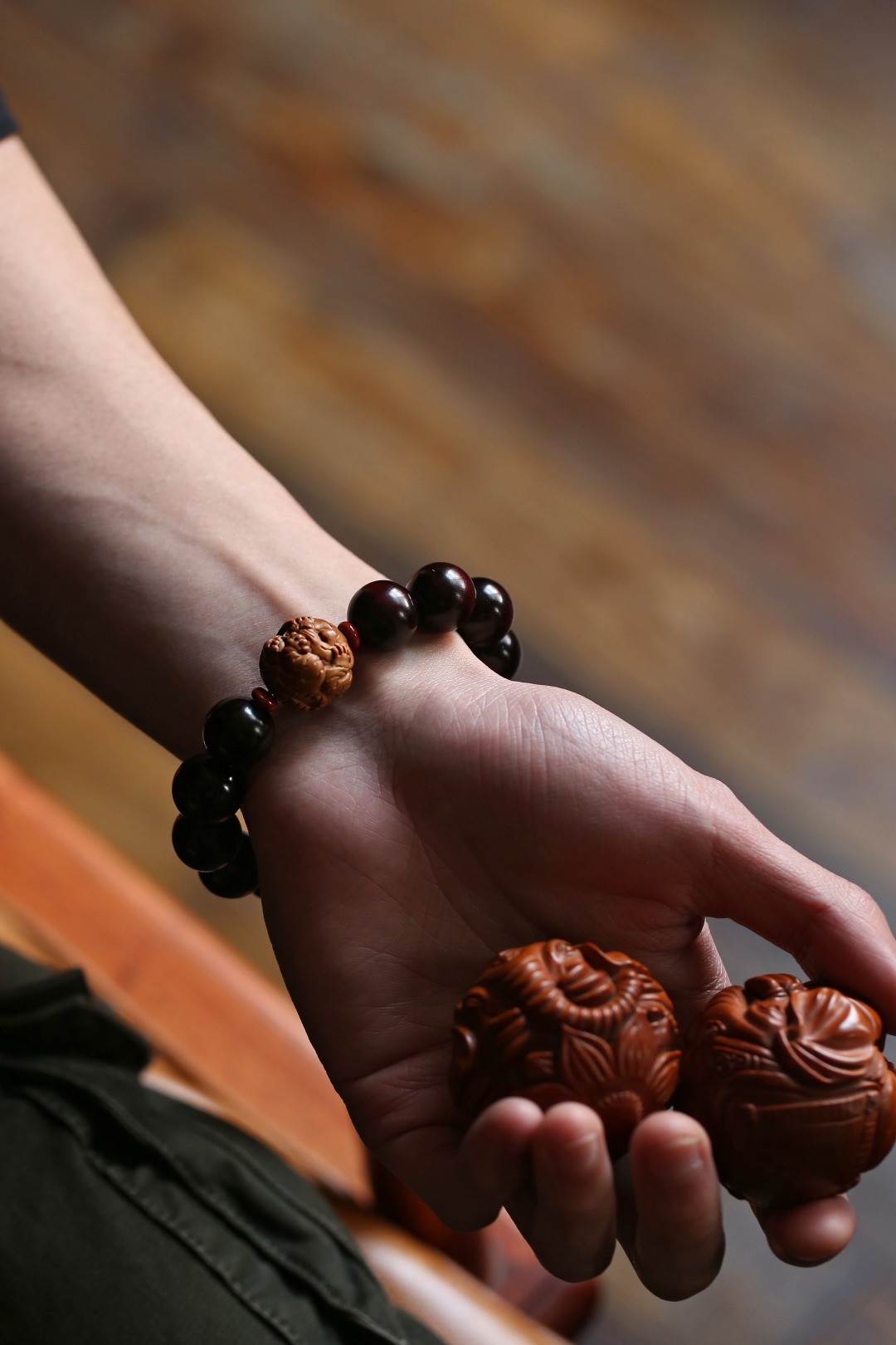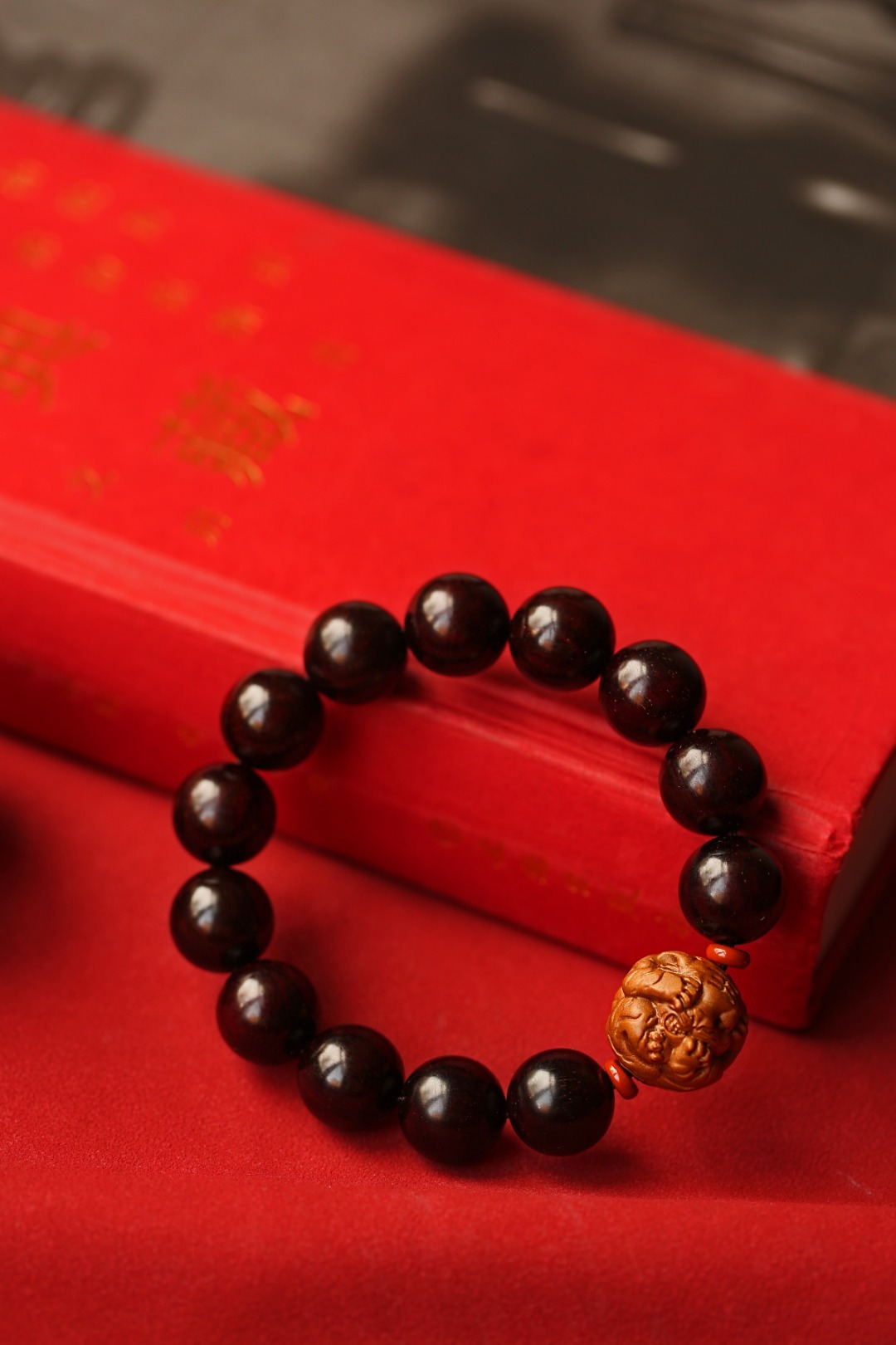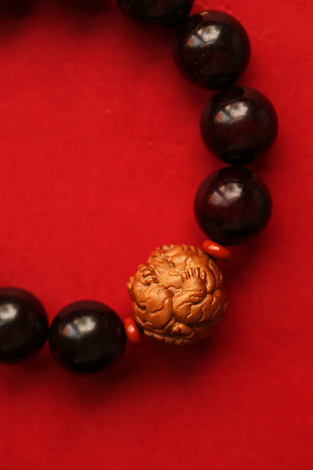 小叶紫檀老料为底,搭配老山檀香小老虎,佩戴大气。配件:老山檀香 红石隔片 紫檀 原创【寅瑞】15mm13颗