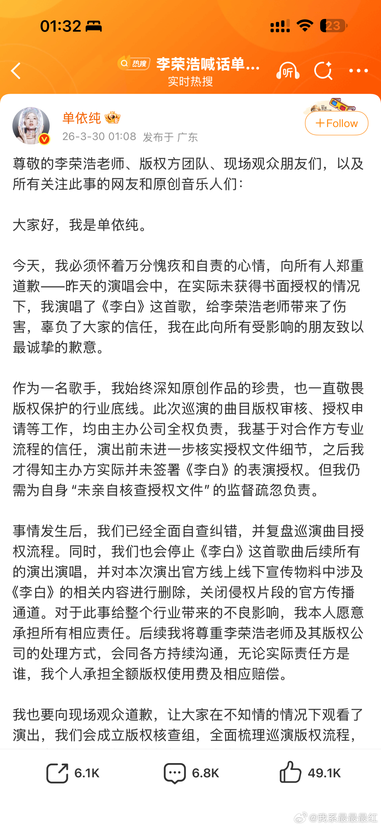 单依纯演唱会发言凌晨一点,单依纯发长文道歉了