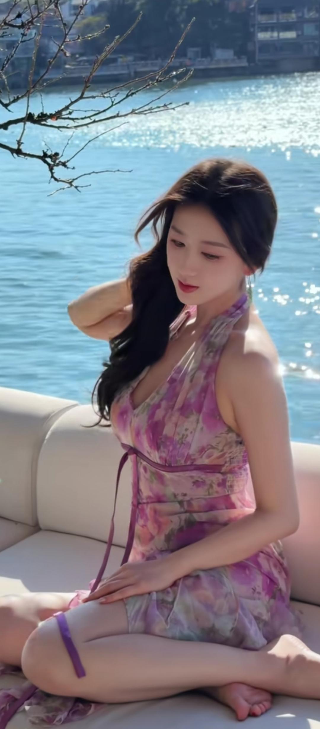 碧波荡漾处,美人倚栏思。