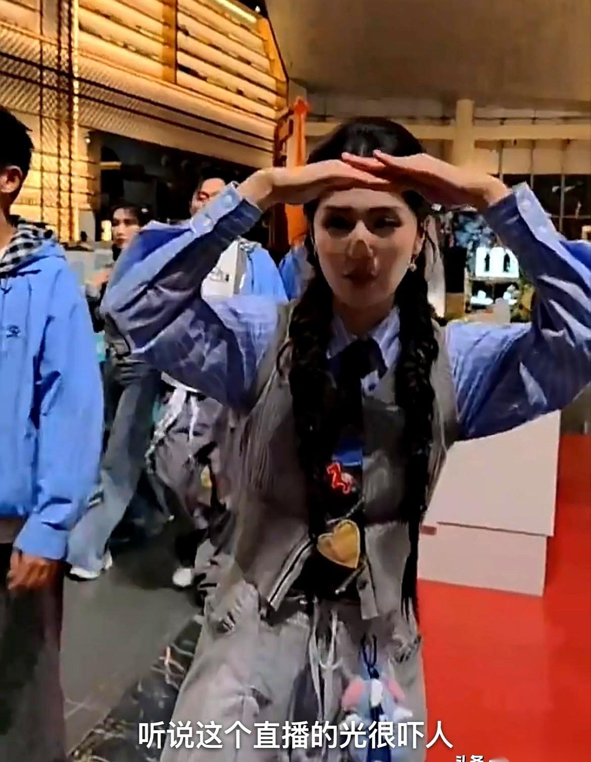 奔跑吧直播间,镜头刚一开,那灯“啪”一下打过来,白鹿下意识就把手抬起来挡脸了。