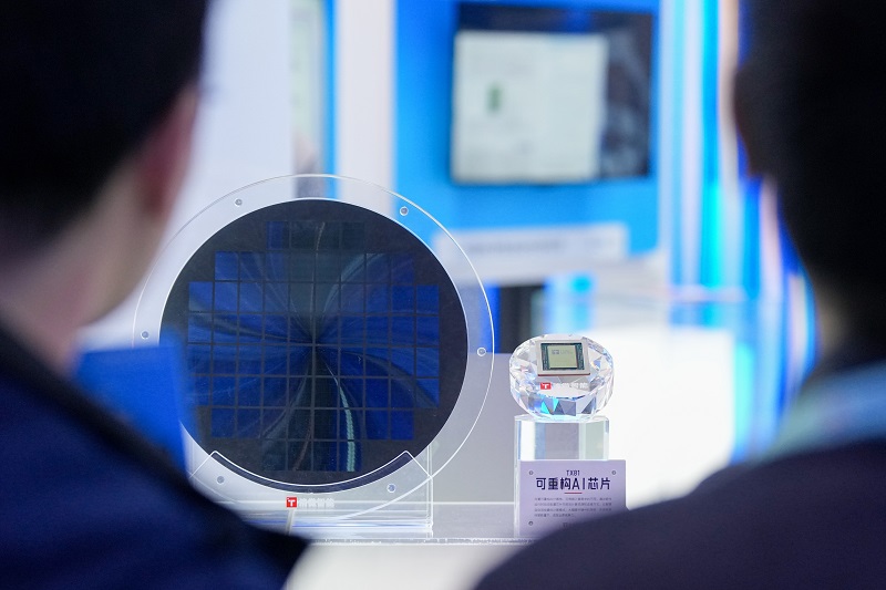 在中关村展示中心常设展上,清微智能公司展示可重构AI芯片。新华社图片