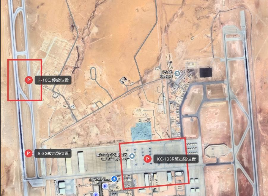 央视新闻的报道,伊朗革命卫队在2026年3月29日发表声明称,沙特苏丹王子空军基地E-3预警机已被完全摧毁。同时,附近其他飞机也遭受严重损坏。划重点:附近其他飞机也遭受严重损坏。通过最新卫星图像显示,沙特阿拉伯的苏丹王子空军基地遭到伊朗袭击后,大爆炸点至少4个。伊朗6枚中程弹道导弹,12架沙赫德自杀式无人机,除了摧毁3架KC-135加油机和1架E-3预警机外,还有C-17运输机、F-16战斗机、F-15战斗机、EC-130H电子战机,E-11A战场通信机等,起飞跑道密密麻麻停了F-16战斗机,也可能受损,或者被炸毁,伊朗导弹,自杀式无人机对沙特境内苏丹王子基地,实施的全方位,无死角的大轰炸。现在就看美国媒体是否爆料,美军官兵还是否泄密,从而确定,美军这一次会有更大,更狠的损失。 沙特的苏丹王子空军基地多次遭伊朗轰炸。伊朗除了摧毁3架KC-135加油机和1架E-3预警机外,C-17运输机可能也受损。 受损的机库也多次被击中,可能还有一架喷气式飞机在跑道上被击中。更关键的是,美国空军预警机,加油机的机组人员,也要“感染传染性脑震荡了!”E-3G预警机停在靠近机场跑道的位置,明显是准备起飞,或者紧急疏散。E-3G预警机需要20-25名美国空军人员联合操控,暂时还不确定,是否有美国空军预警机机组成员被炸,这些成员可是美国空军的宝贝,甚至比E-3预警机还要重要。 E-3G预警机的雷达被炸毁,并且这架E-3G预警机近期没有出动和移动位置,说明可能一直在抢修中。所以伊朗无人机,可能炸死了美军维修人员。而且如果伊朗小摩托用的反辐射战斗部,就说明这架预警机可能在调试雷达系统。这个时候,美国空军E-3G预警机上应该有人。 大量美军战机停降沙特苏丹王子基地,这也说明沙特这些阿拉伯国家是直接参与到对伊朗的攻击当中的。美国中央司令部迟迟未公布E-3望楼预警机被击毁的消息,伊朗官方媒体已经开始拿中央司令部的“辟谣”嘲讽了,伊朗还公开了,E-3G预警机被炸毁的卫星图,对美军进行打脸。