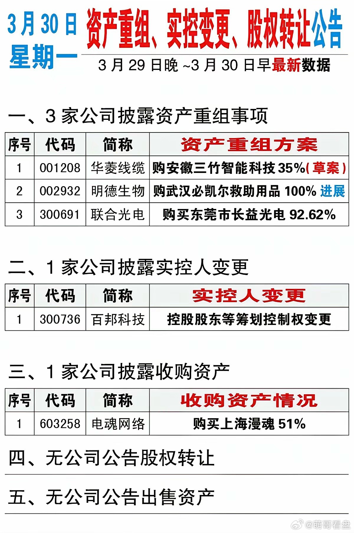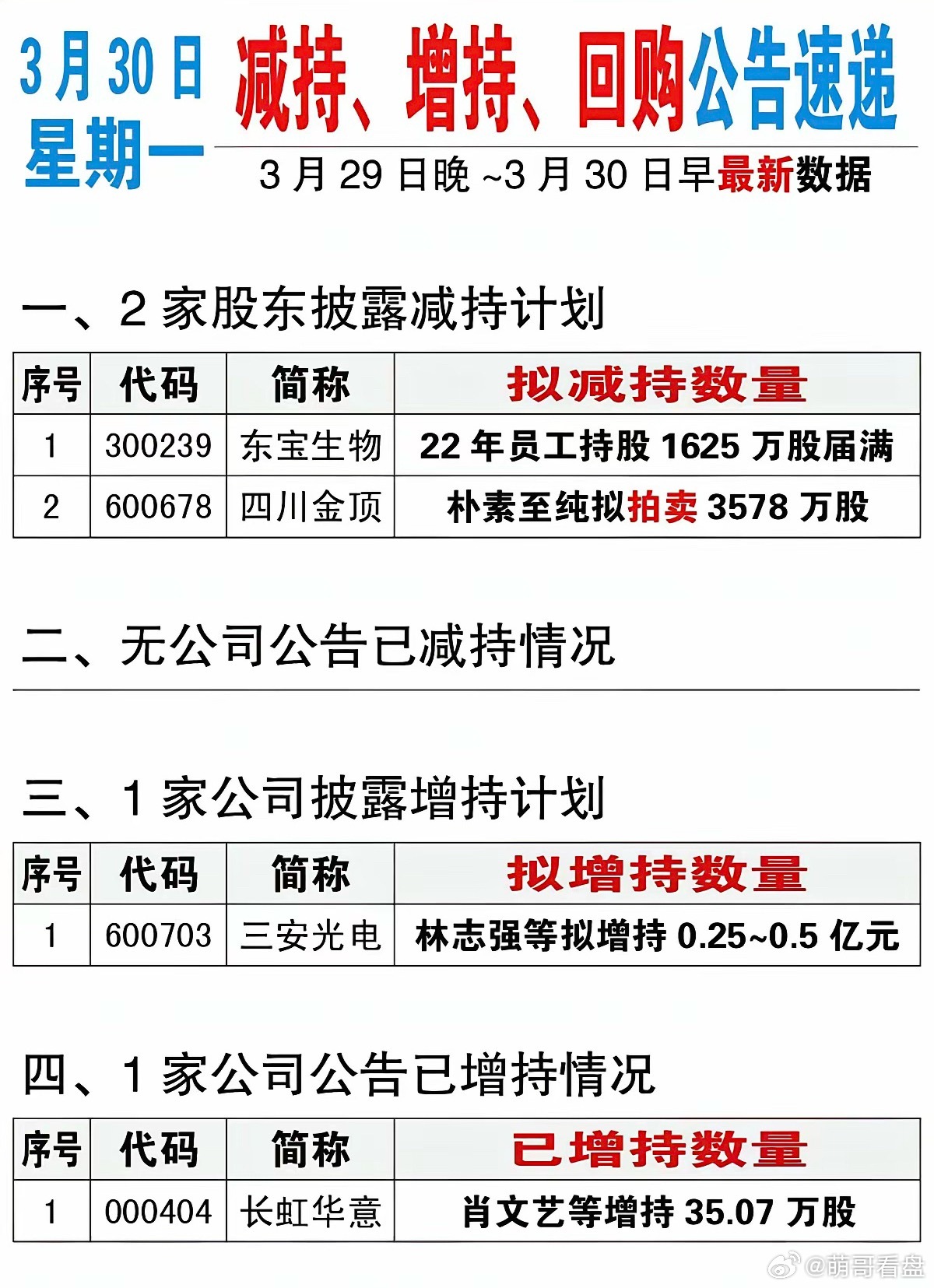 3.30周一 上市公司公告 精选汇总!主要涉及:减持、增持、回购、资产重组、实