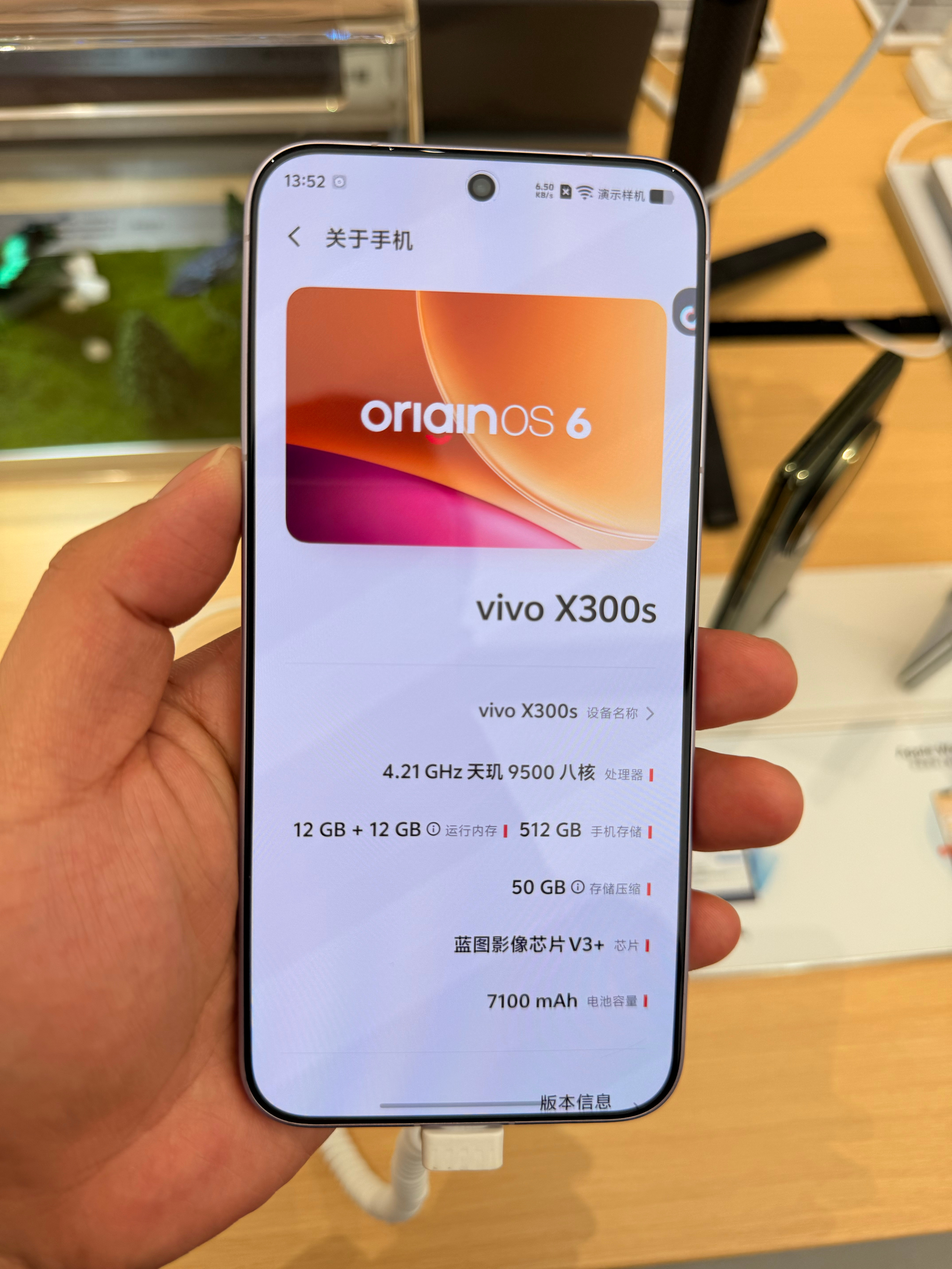 VIVO X300s展示机这个颜色嘛 呃 很适合女生整体摄像头凸起很克制今年说X300s也是专业小V单蓝图影像芯片V3+