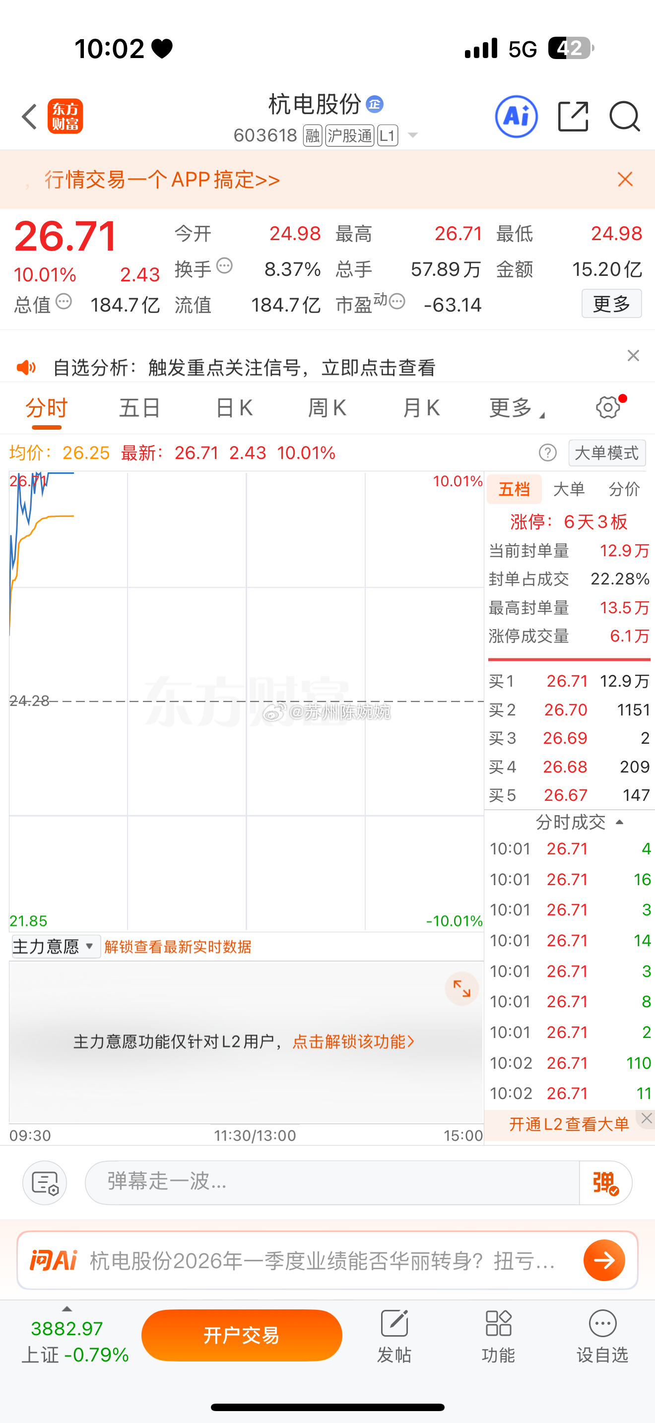 炒股这条路,有起有落,能遇上这样接连涨停的好票,真的是格外幸运。从周五的惊喜涨停,到周一早盘再度封板,杭电股份这波走势太给力,稳稳地吃上了一口大肉,这种踏实又开心的感觉,想必各位炒股的友友们都深有体会。没有白费的关注和判断,选对票、拿住票,收获盈利的那一刻,所有的等待都值得了。
