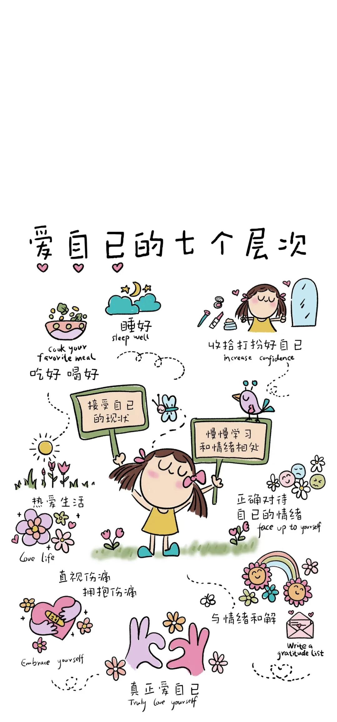 爱别人前,先自爱! 这句话是分享给奉献精神的人的。 自私的人全部都是自爱,不爱别人!即使爱,也是占有。 奉献的人爱别人前,先得照顾好自己,特别是不要委屈自己。 好多人爱自己的家人,都是无条件的爱。 千万别! 先爱自己,再爱他们。 你自己,才是你所有爱的起点。 愿你清醒、独立、闪闪发光,爱自己,才是终身浪漫的开始。