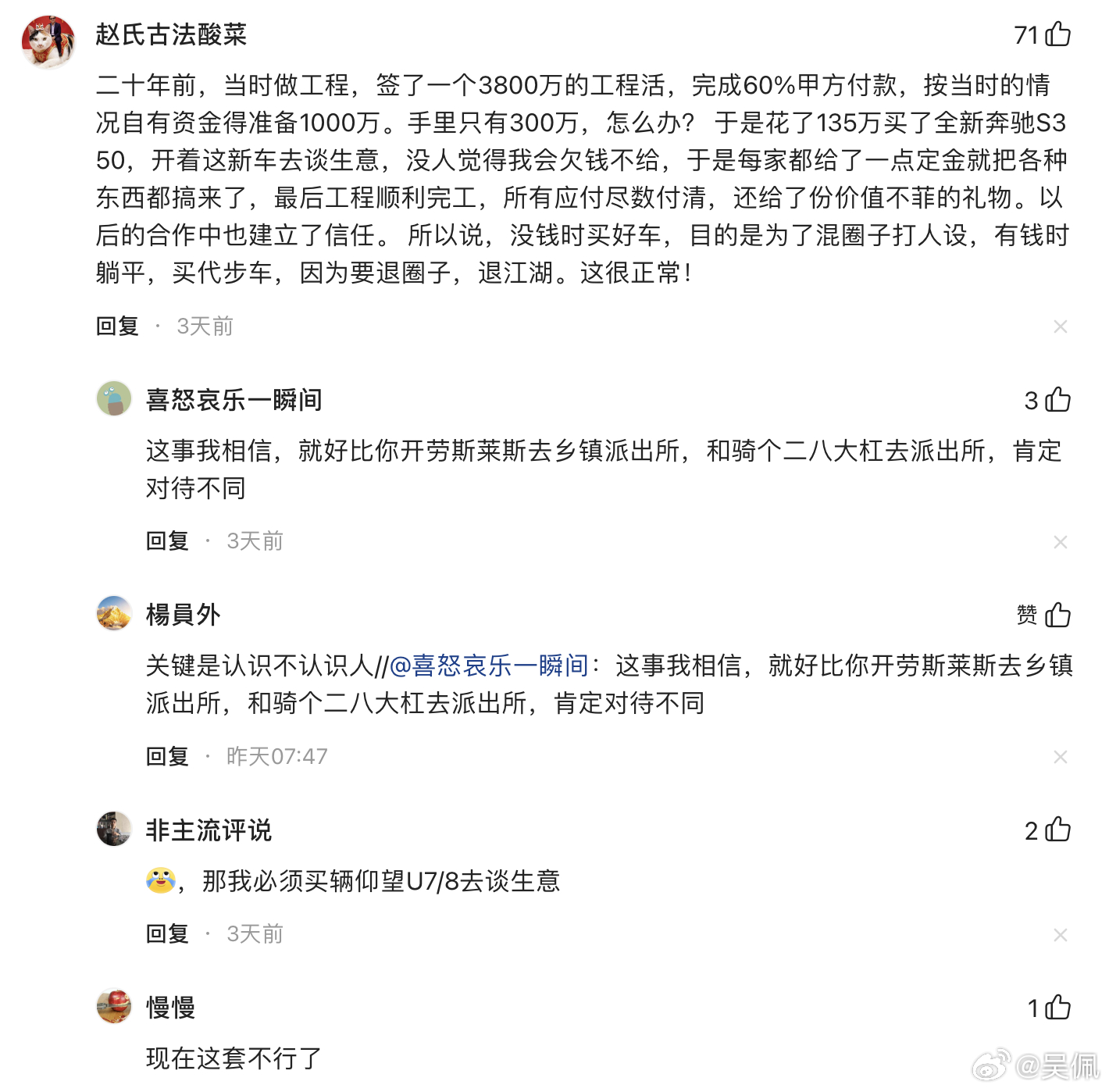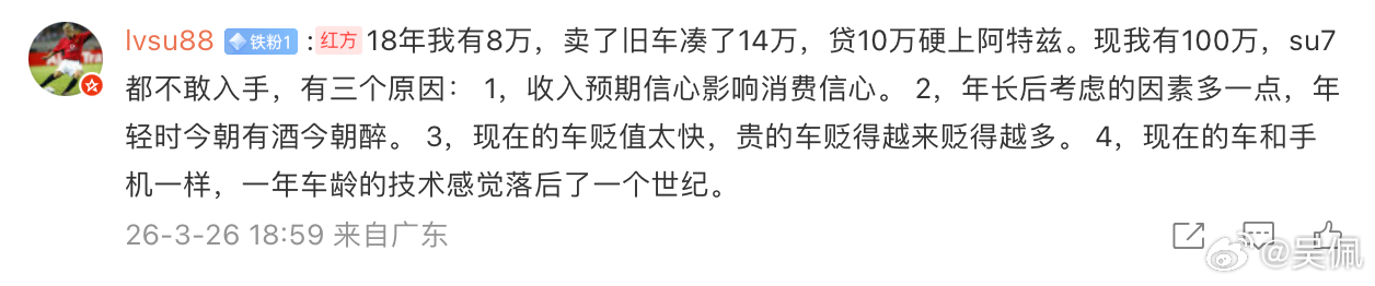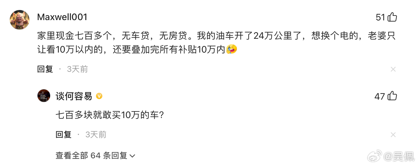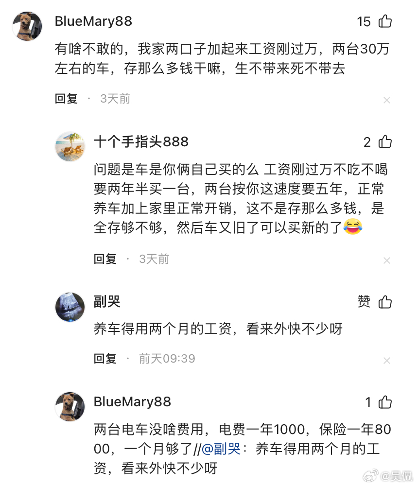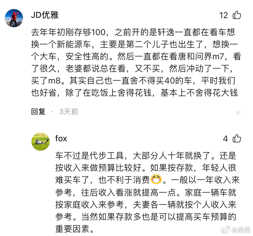 上周我发了条不同存款的购车心理的帖子(网页链接),好多朋友交流了他们的故事,读起