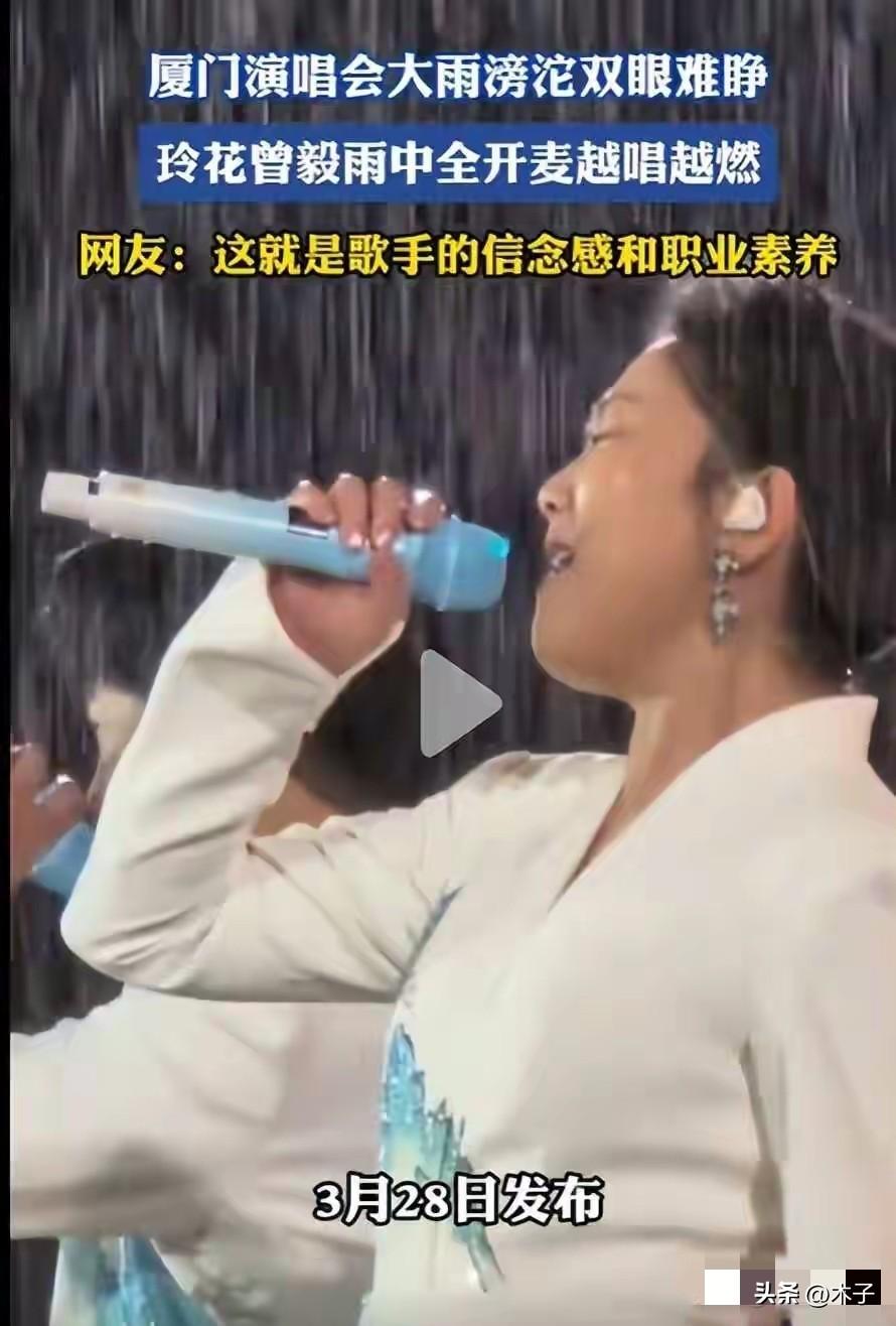 终于知道凤凰传奇为什么能几十年长红不衰了!就这敬业程度,确实配得上。暴雨浇得眼睛都睁不开,却全程全开麦不划水,陪着上万观众一起淋雨蹦迪,这才是真·国民天团! 3月28日厦门白鹭体育场,凤凰传奇“吉祥如意”巡演刚唱到第四首,天公直接变脸,倾盆暴雨瞬间砸下来,内场观众秒变落汤鸡,看台区伞阵林立,地面积水直接没过脚踝,所有人都以为演出要暂停、甚至提前收场。 结果谁都没料到,玲花直接推开工作人员递来的伞,扯着嗓子对着全场喊:“座位都湿了吧?别坐了!站起来!蹦起来!” 曾毅抹掉脸上的雨水,紧跟着接梗:“淋最大的雨,蹦最野的迪!” 一句话直接把全场点燃,原本躲雨的观众齐刷刷扔了伞,踩着积水跟着节奏蹦,体育场直接变成巨型“水上迪厅”。 更让人破防的是他俩的状态,全程没有半点敷衍矫情! 雨水直接糊住眼睛,玲花就侧头吐掉嘴里灌进去的雨水,擦一把继续飙高音,《山河图》《奢香夫人》的调子稳如磐石,穿透力半点没被雨声盖过去。 曾毅短发湿透贴在额头,舞台湿滑差点滑倒,扶着麦架稳住身型,rap节奏丝毫不乱,被雨水呛到也硬扛着唱完,连换气都没乱半分。 整场演出,他俩五次主动扔掉雨伞,冲到舞台最边缘,陪着台下上万观众一起淋雨,没有因为暴雨降半调、少唱一句、划水一秒,甚至还即兴加了互动,把一场突如其来的天灾,硬生生唱成了全网封神的名场面。 《奢香夫人》响起时,数万人军训式大合唱,声浪直接盖过了雷声雨声;唱《山河图》高潮那句“挥毫提笔画我山河”时,一道闪电刚好劈裂夜空,天然特效配上磅礴的歌声,直接把现场拉成了史诗级画面。 最牛的是,这么大的雨,全场几乎没人提前离场,从00后到60后,全都浑身湿透举着荧光棒,踩着积水蹦到了最后。 我真的看笑了,对比内娱那些骚操作,凤凰传奇这波简直是降维打击。 多少歌手演唱会,音响烂到听不清人声、全程假唱对口型,稍微遇点小雨就躲在伞里敷衍,甚至直接取消演出,还敢吹“神级现场”。 多少流量艺人,把演唱会当圈钱工具,票价炒上天,结果全程划水念台词,出点问题就甩锅不可抗力,把观众的期待和钱全当废纸。 有人说不就是淋个雨吗?可内娱这么多开演唱会的,有几个能做到? 他们不是不能躲在后台等雨停,不是不能拿着伞站在舞台中央敷衍唱完,是他们真的把观众的奔赴当回事,不拿天气当借口,不糊弄每一个花钱来现场的人。 终于懂了他们为什么能火二十多年,从广场舞神曲到全年龄段通杀,靠的从来不是流量和炒作,是实打实的唱功,是刻在骨子里的真诚,是对舞台最基本的敬畏。 你拿观众当回事,观众就永远捧你,凤凰传奇活该火一辈子! 凤凰传奇演唱会万人雨中大合唱 凤凰传奇敬业封神 内娱艺德天花板