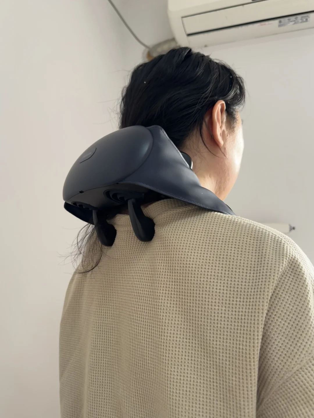 我觉着是这三个性价比最高的一个,按摩头摸着挺软的,是硅胶材质,按摩力度算适中,斜方肌也能照顾到,热敷没前两个好,就在后颈那里有,预算少的姐妹日常放松用可以考虑!