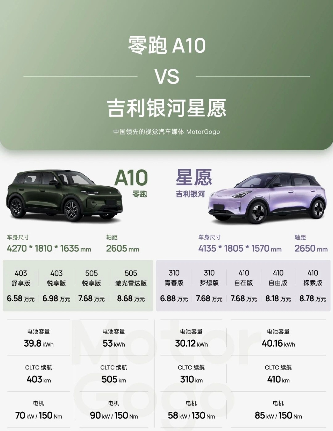10万级别,银河星愿和零跑A10 如何选原图来自大v聊车