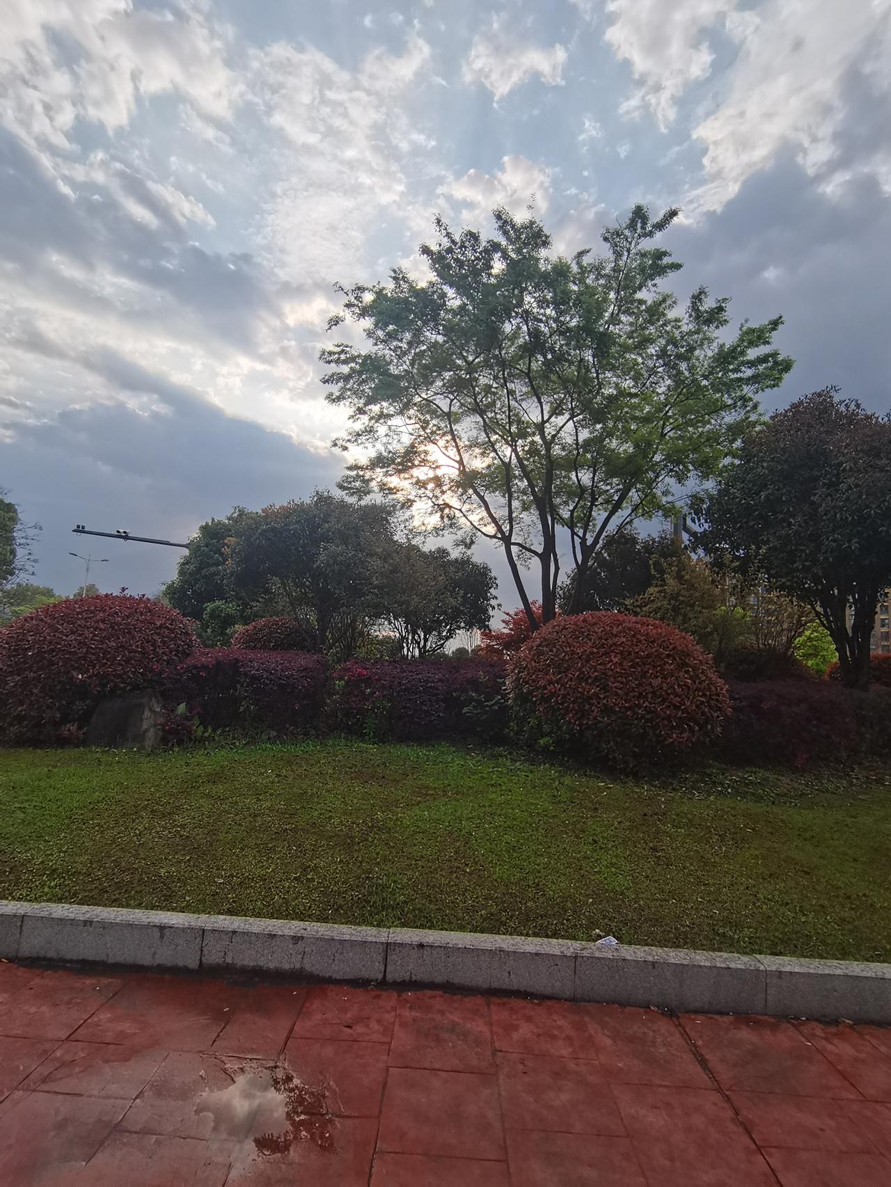 天气预报真不能信,明明预报今日有雨,送完孩子上学回来路上,太阳竟然出来了!那个欣