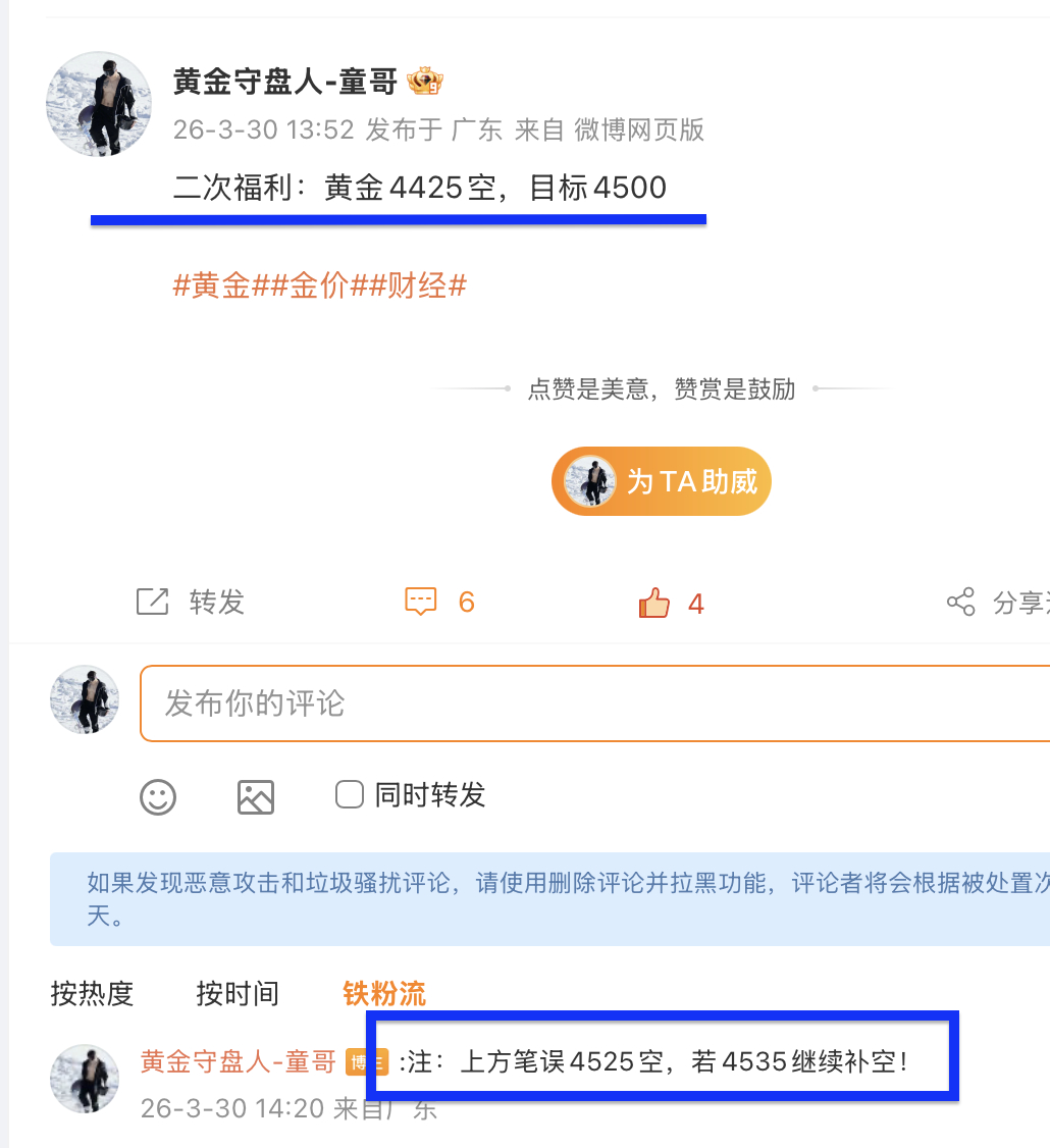 今天童哥有贪心了,黄金4525--4516不出,抵达4535接空回落4525附近又没出,各位场外的伙伴要自行风控好,有个80-100点左右设置一个保本损位,稳的很!